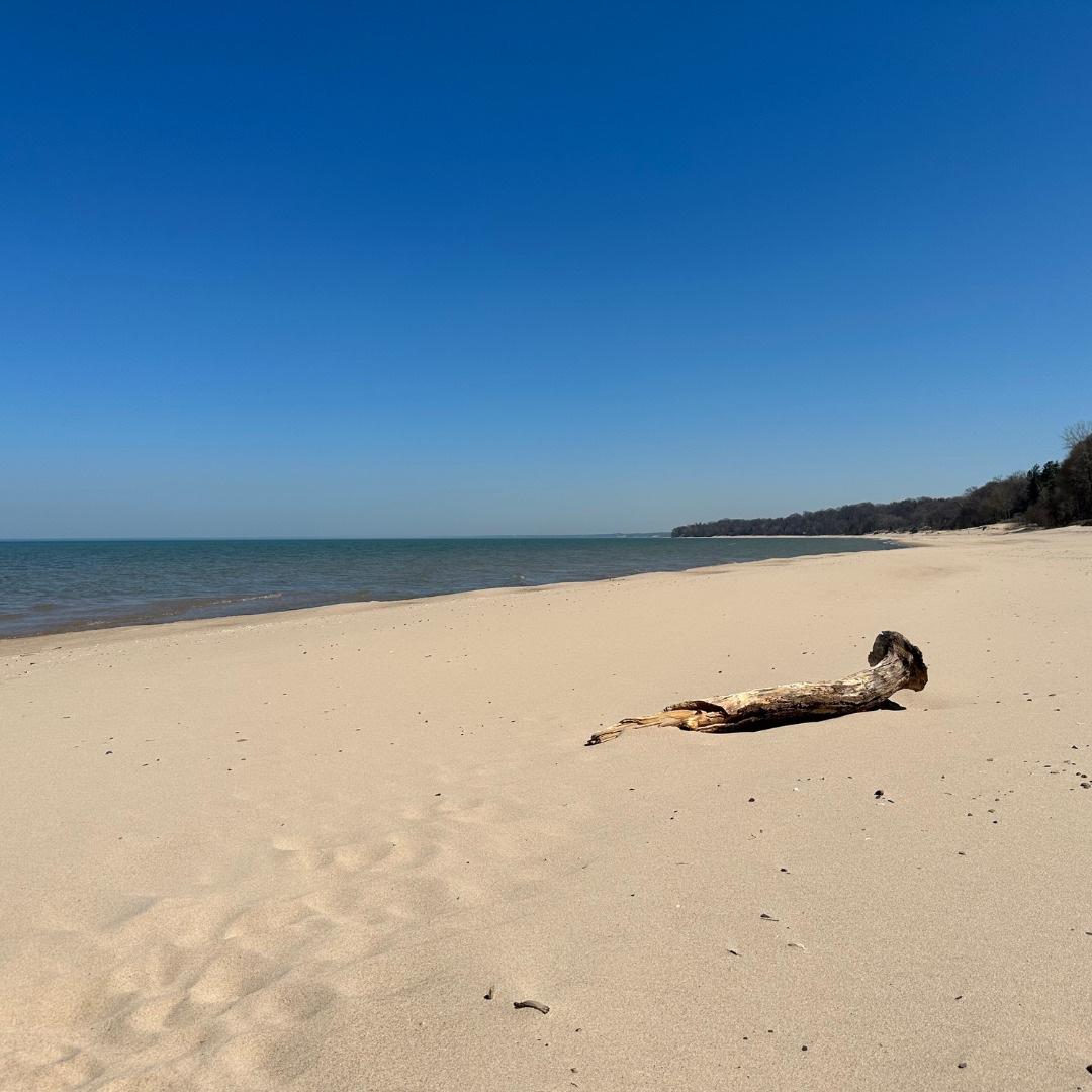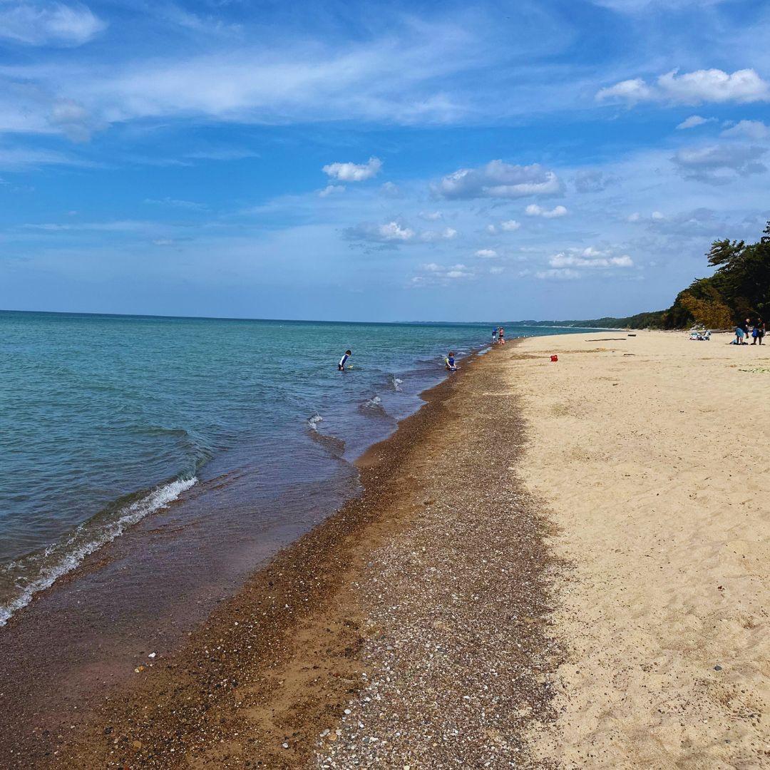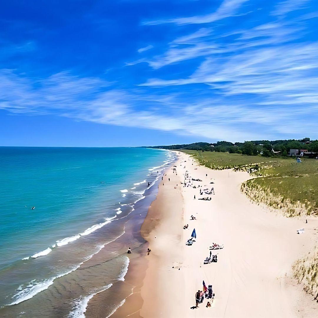 - Shoreline: Modest stretch of Lake Michigan shoreline with soft sand, intimate and less crowded