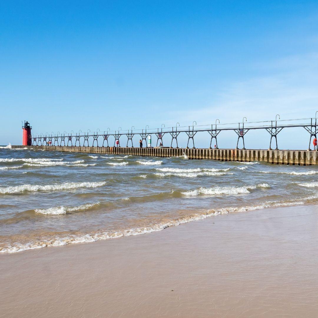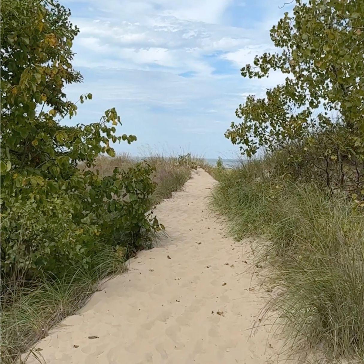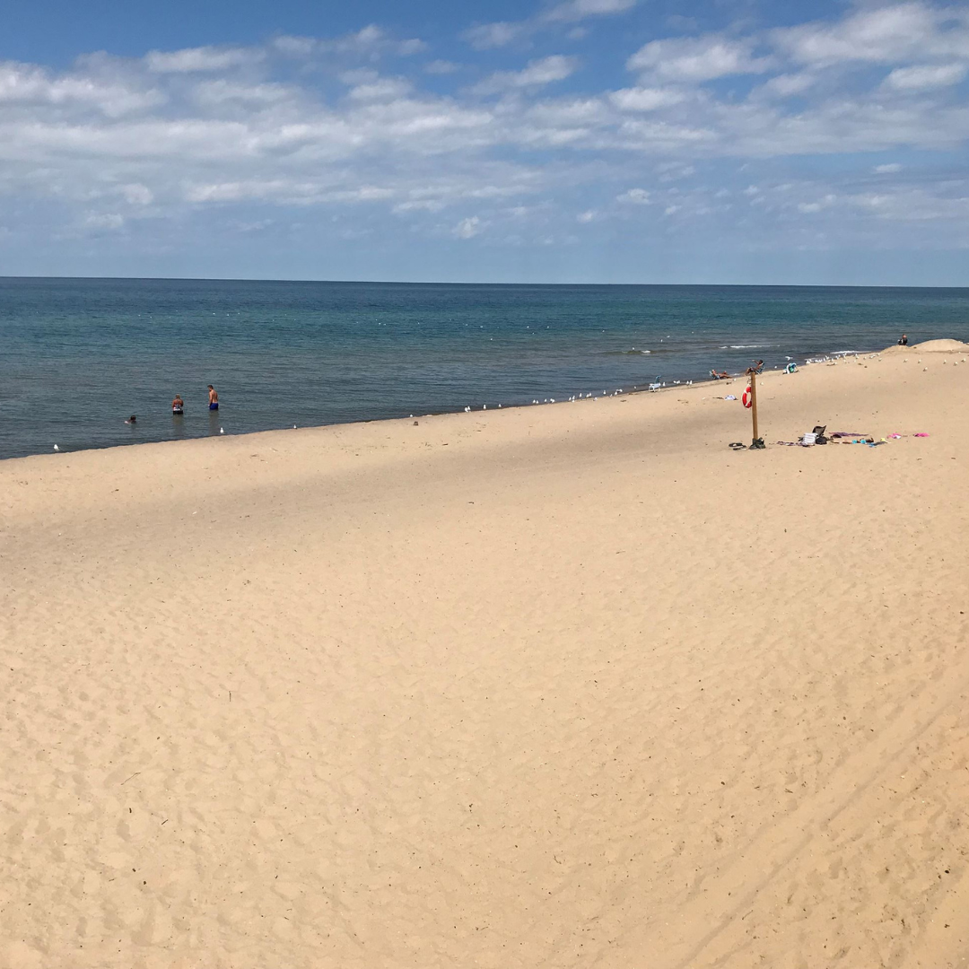 - Shoreline: Modest stretch of Lake Michigan shoreline with soft sand, intimate and less crowded