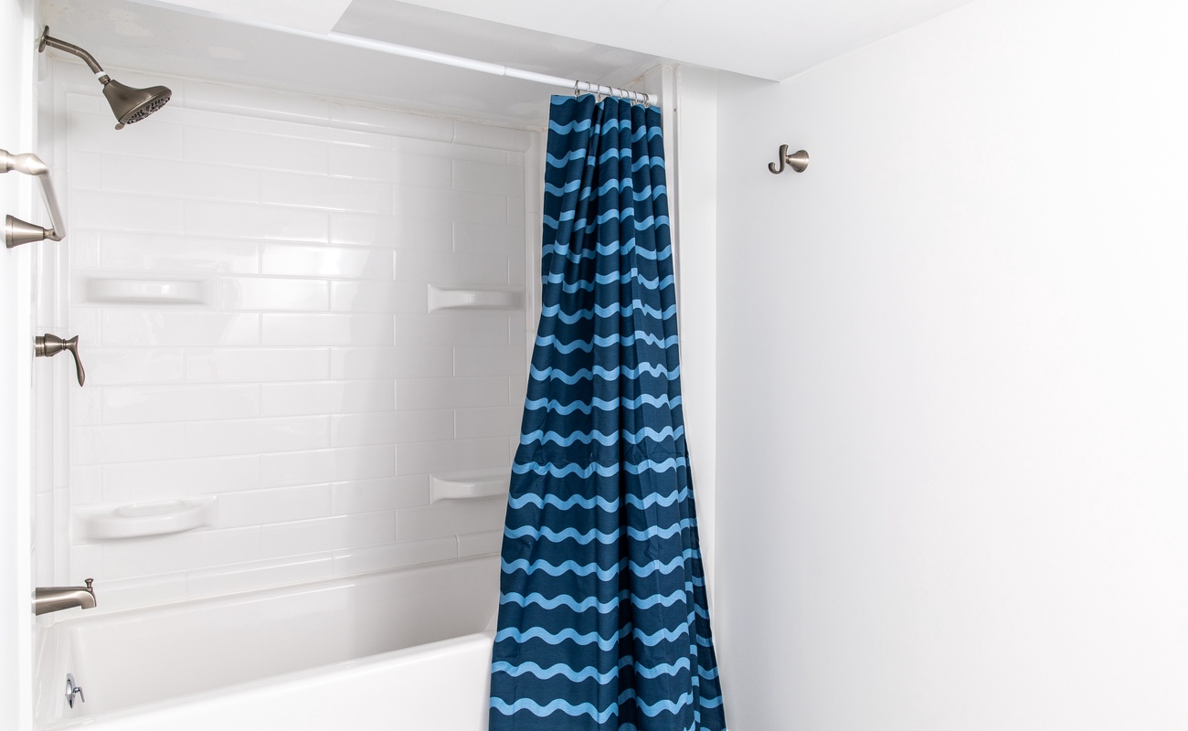 The second upstairs bedroom sleeps 3 in a full bed and twin bed. There is also a bathroom between these two bedrooms.