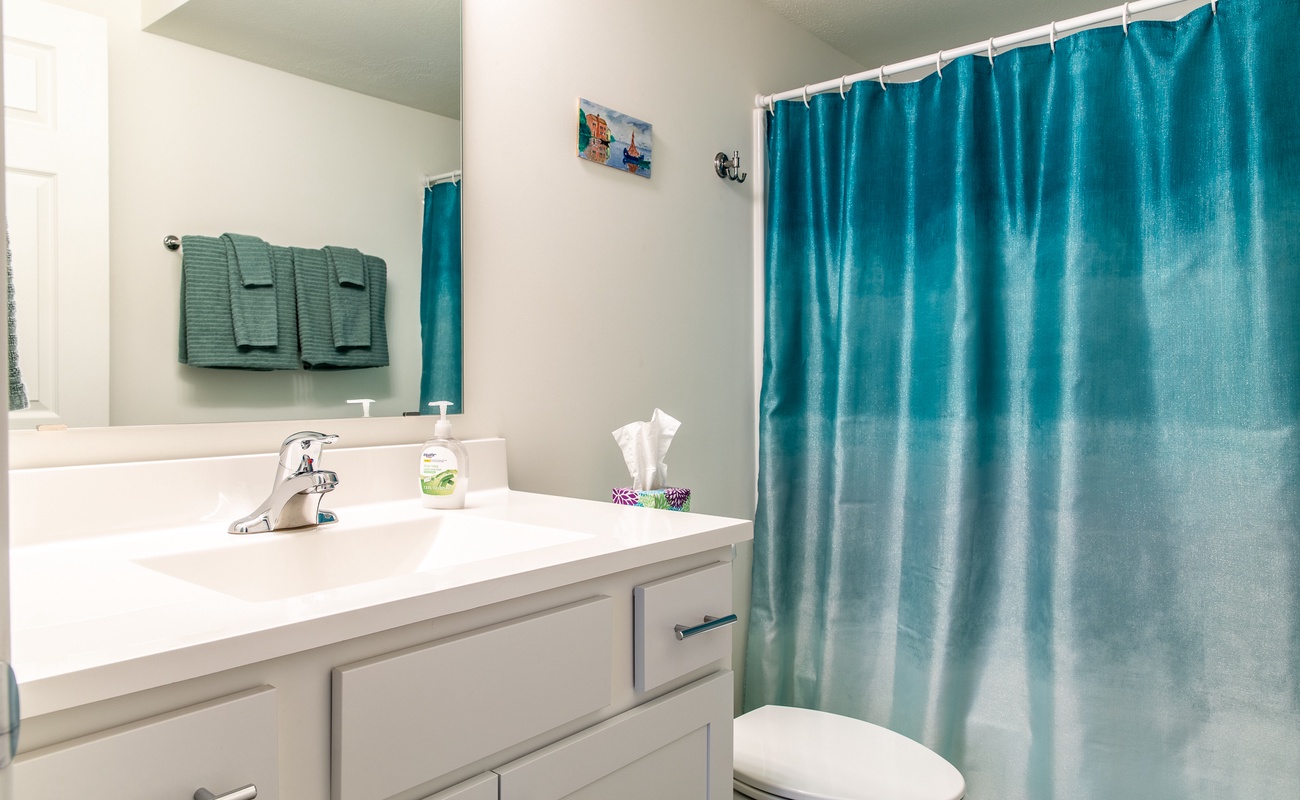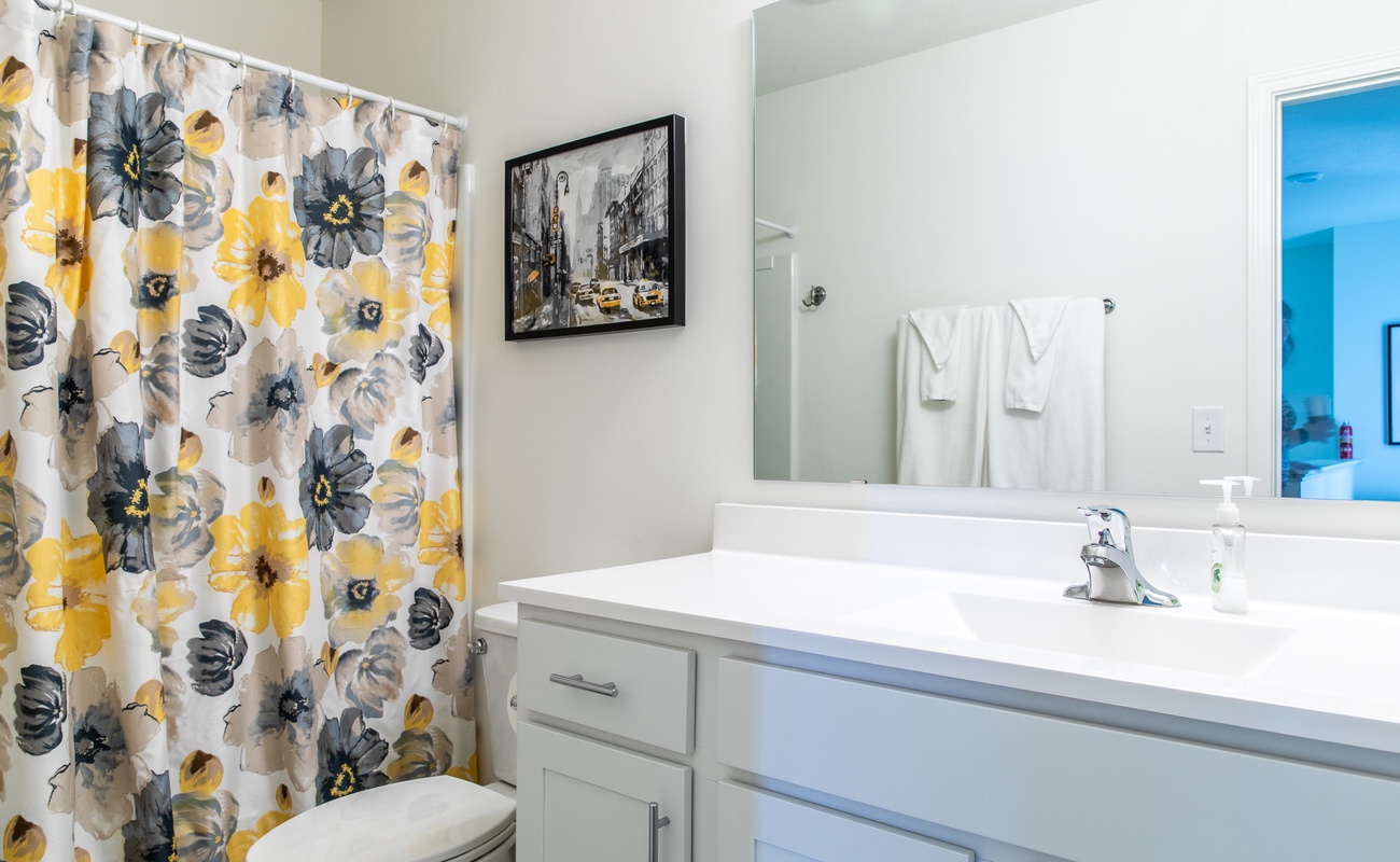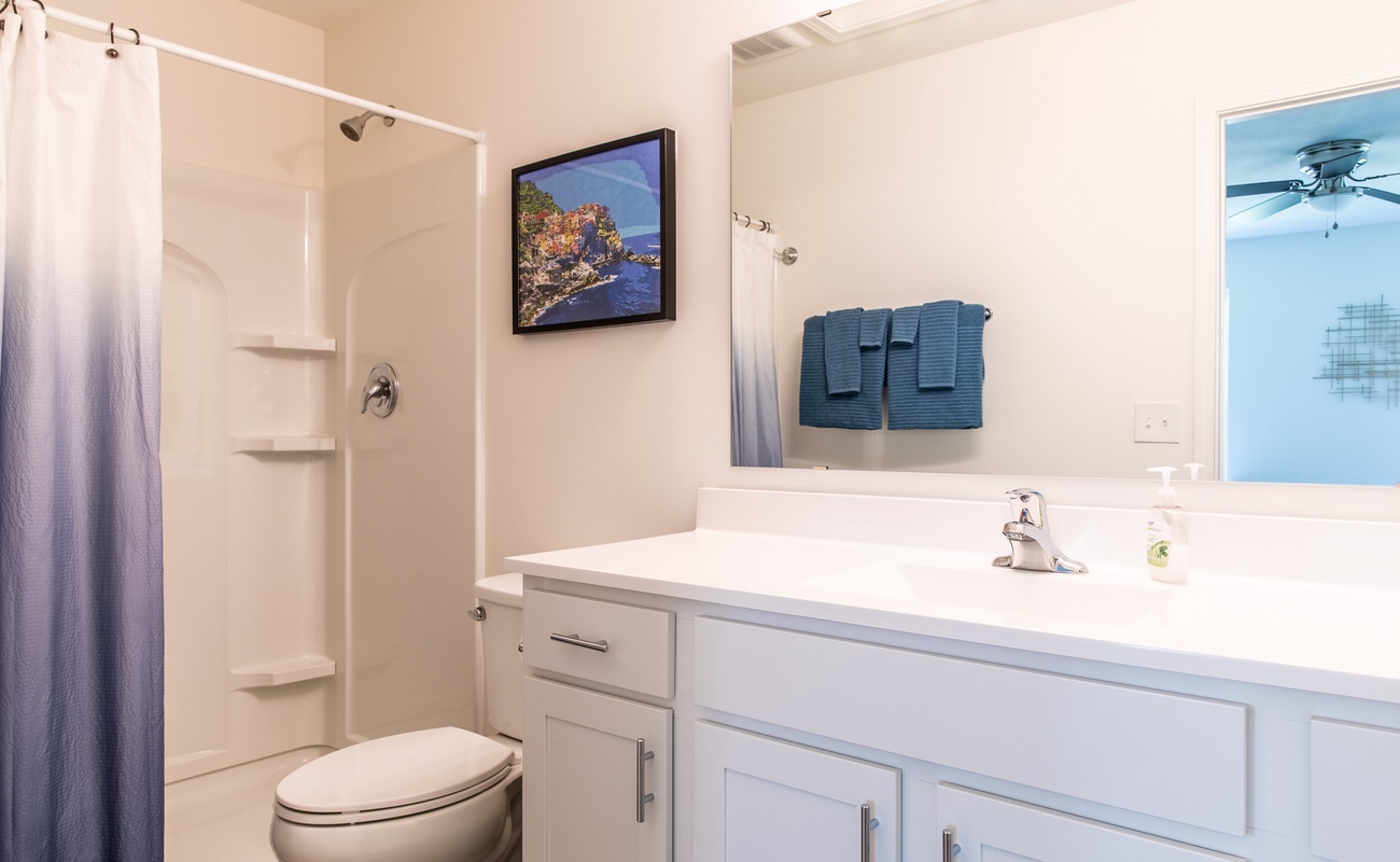 Heading upstairs off the main floor you’ll find 4 spacious bedrooms and a large full bathroom. The main suite features a large King bed, private bathroom, and a desk (in case you need to work from vacay). The other bedrooms upstairs feature a twin over full bunk bed, and 2 more king beds. There is also a wireless printer with ink and paper available for you to use if needed.