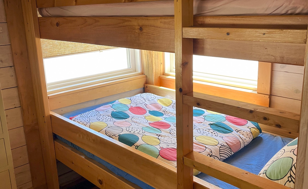 Main level bedroom with 2 sets of bunk beds, sleeping 4 total