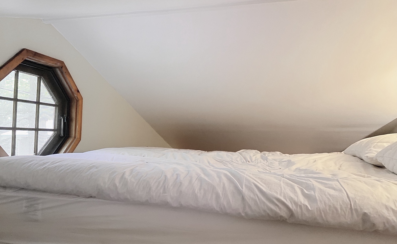 Loft with a queen bed, the mattress is on the floor due to the nature of the space YOU WILL HAVE TO CLIMB A LADDER TO ACCESS THE LOFT - PLEASE NOTE IN ADVANCE