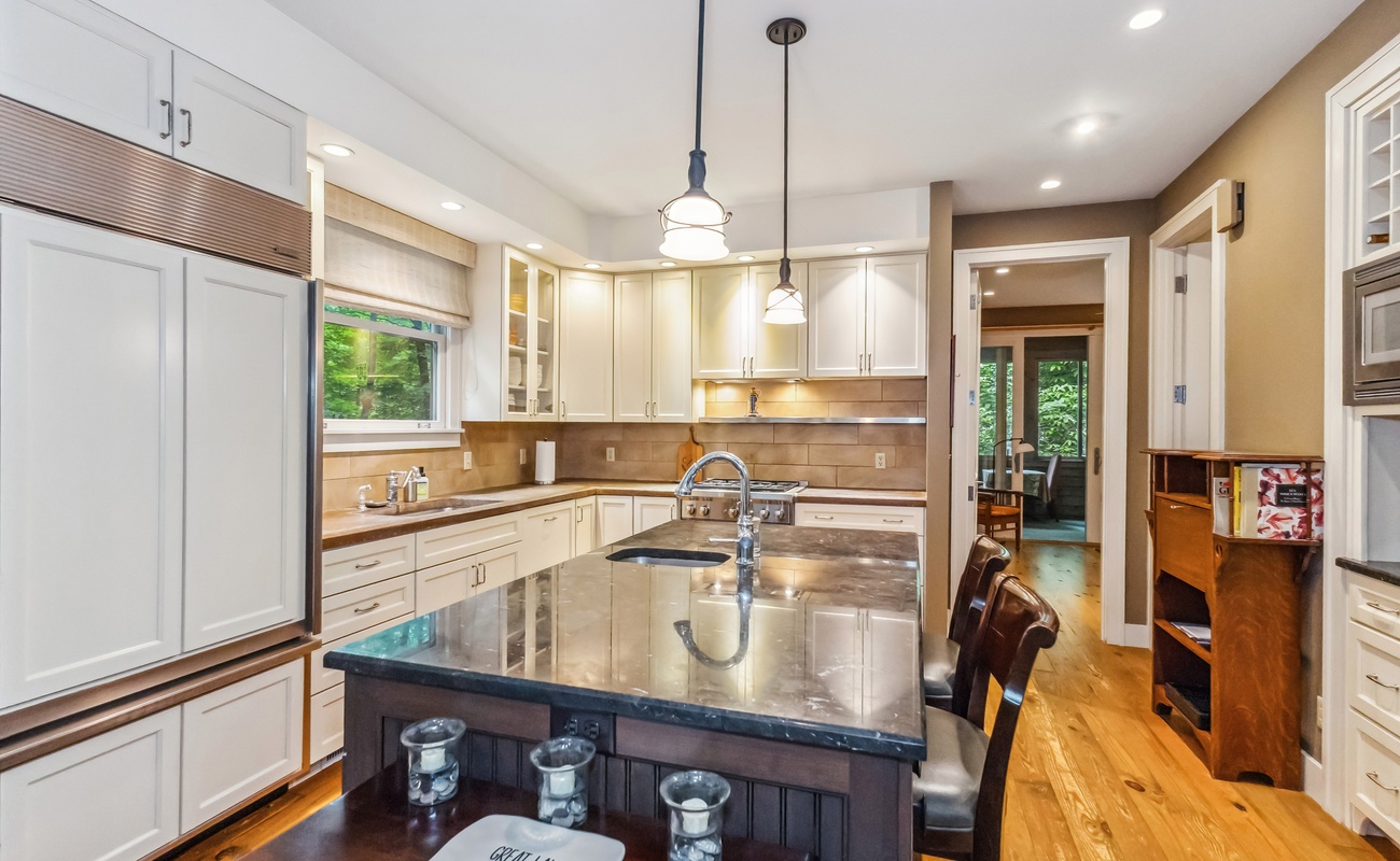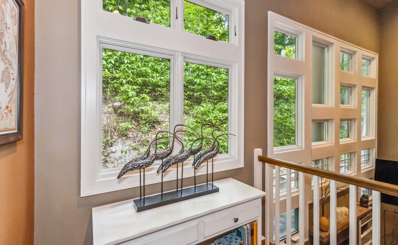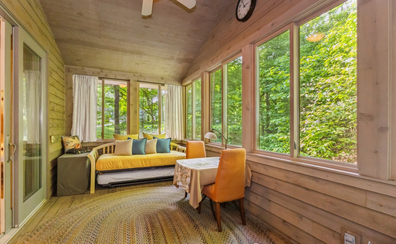 Tucked beneath the canopy of Southwest Michigan’s wooded landscape, is a warm, welcoming hideaway designed with group getaways in mind. With room to sleep a crowd and thoughtful spaces for gathering (or sneaking away for quiet time), this multi-level home blends rustic charm with modern comfort. From outdoor dining on the screened porch to cozy nights in the bunk room, every corner invites you to relax and reconnect.