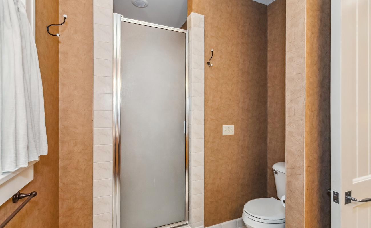 Full bathroom just steps from the bunk room—easy for late-night trips or post-beach cleanups