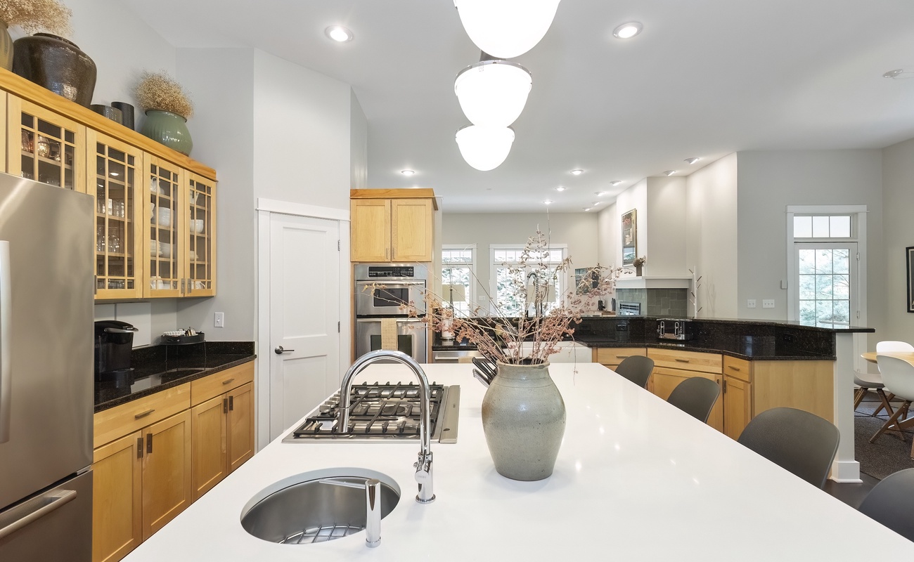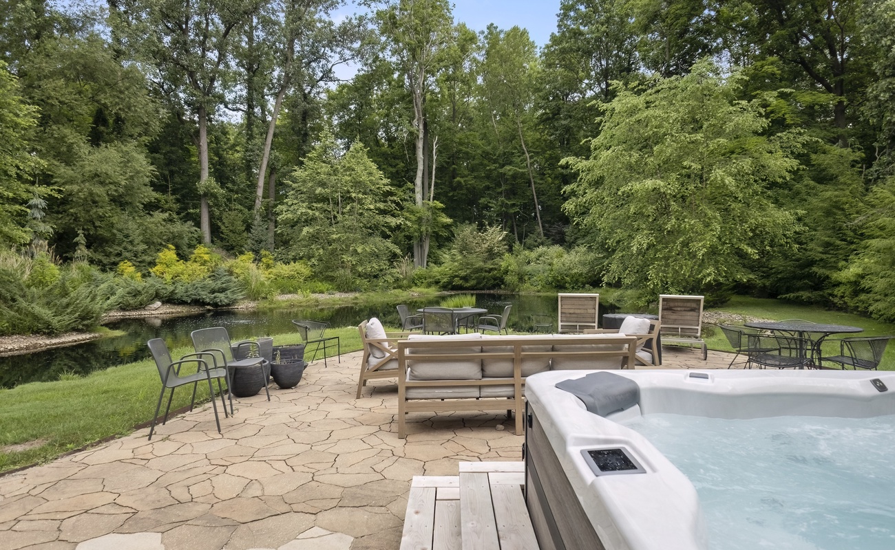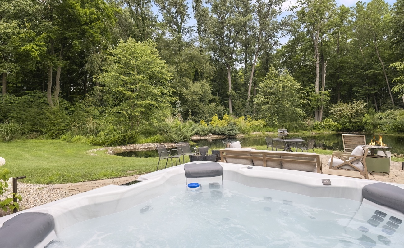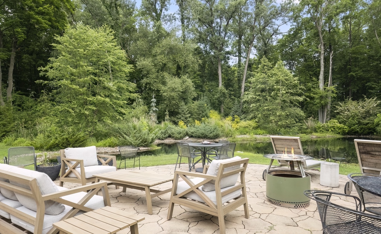 This beautifully designed 3-bedroom, 2-bath home offers a luxurious escape in the heart of Harbor Country. Nestled on a lush, wooded lot with a private pond, hydrangea-lined gardens, and elegant outdoor spaces, Four Seasons is made for relaxation. Inside, enjoy an open-concept layout, modern furnishings, and three serene bedrooms—each with its own charm. The standout feature? A dreamy screened-in porch that connects the indoors with the natural beauty just beyond the door.