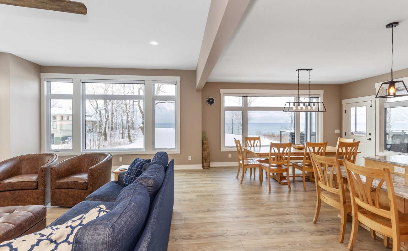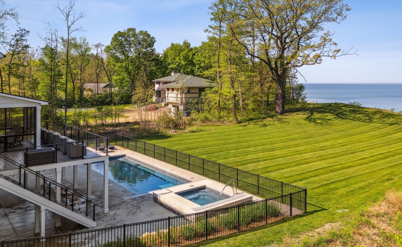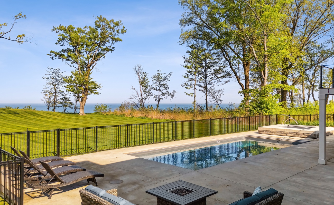Experience lakefront living at its finest in this beautiful, open and modern three-level retreat overlooking Lake Michigan! With five bedrooms, six bathrooms, a private heated pool, the private neighborhood beach is 131 newly installed steps below the house, hot tub, game room, this home was built for unforgettable family gatherings and group escapes. Watch sunsets from expansive windows, cook together in the gourmet kitchen, or unwind on the screened porch as lake breezes roll in.