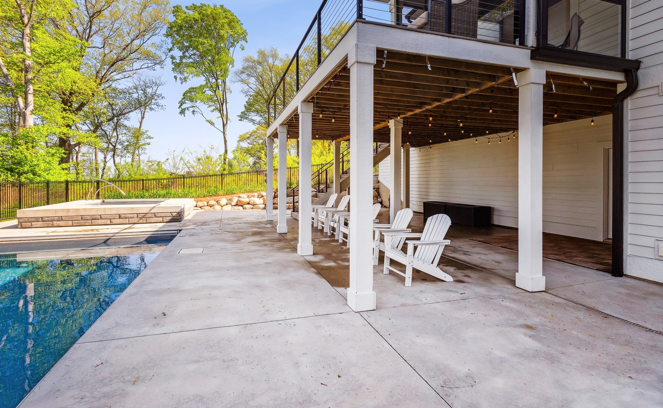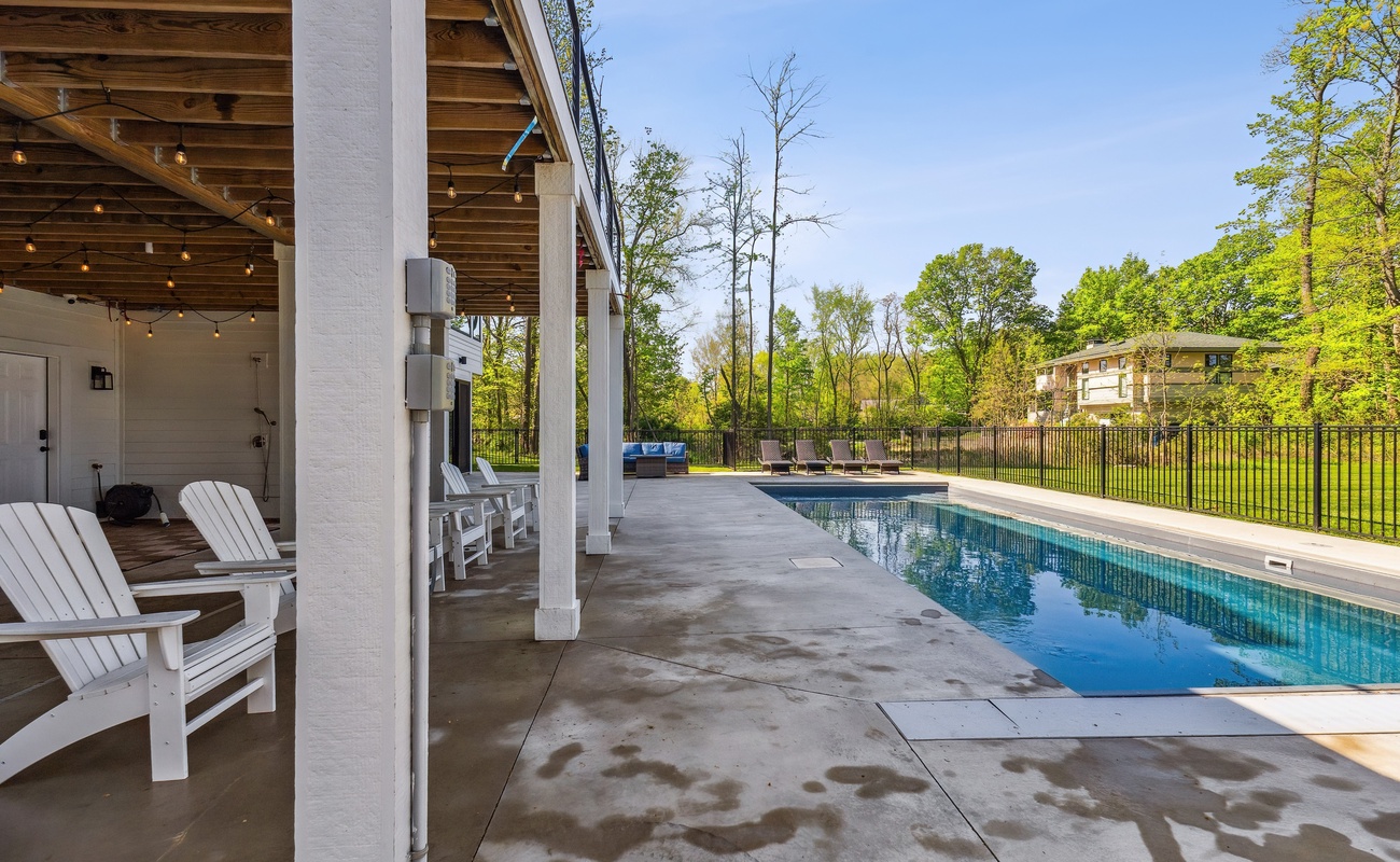 Heated, covered pool with lounge chairs