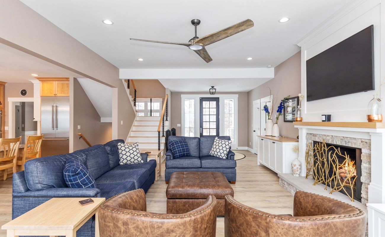 Cozy furnishings, smart TVs, and lake views