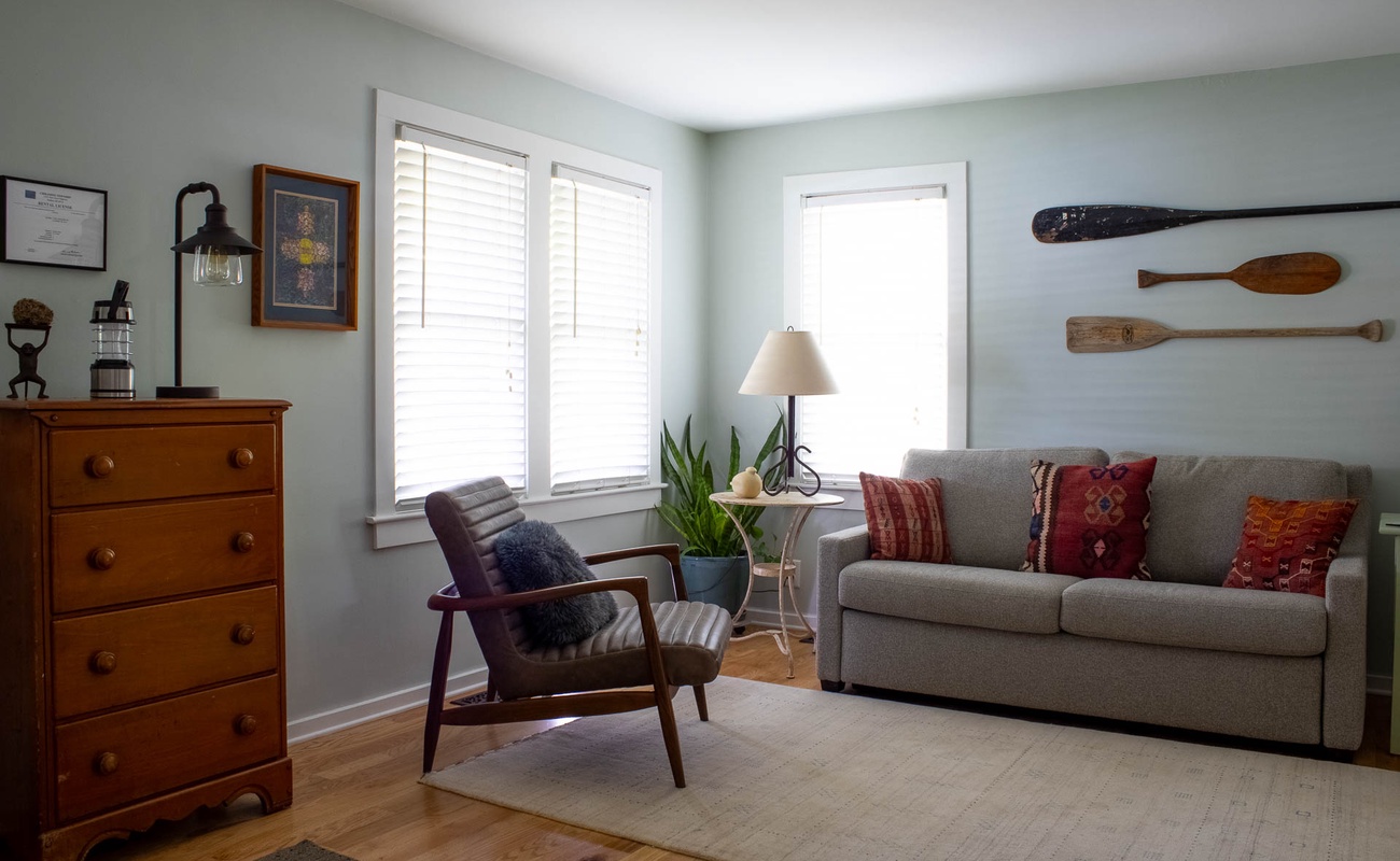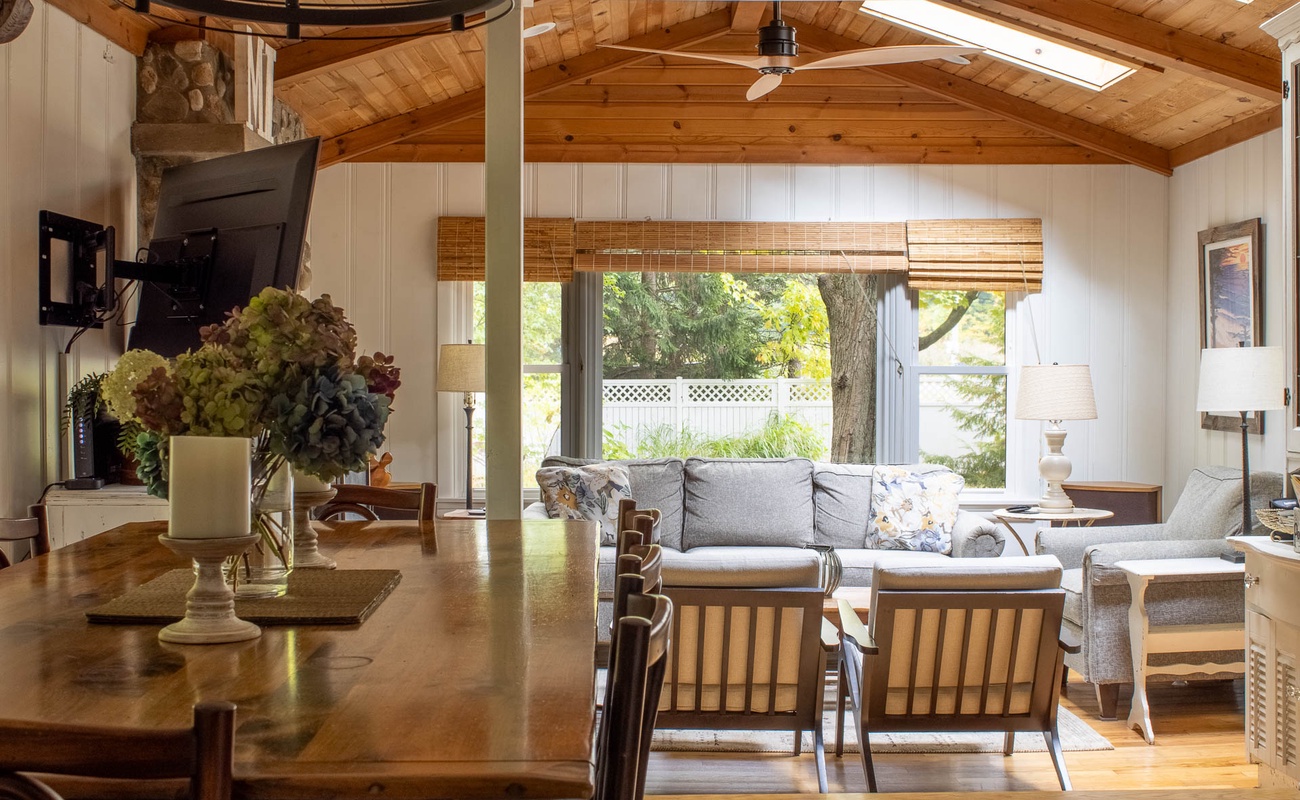 Welcome to Hygge House in Lakeside, a cozy, beautifully renovated retreat just 1,000 feet from a private Lake Michigan beach. Named for the Danish word meaning “coziness and contentment,” this two-bedroom, two-bath home was designed for rest, connection, and comfort in every season. With a spacious backyard, inviting fire pit, and thoughtfully styled interiors, Hygge House captures the essence of Harbor Country living — relaxed, natural, and warmly welcoming.