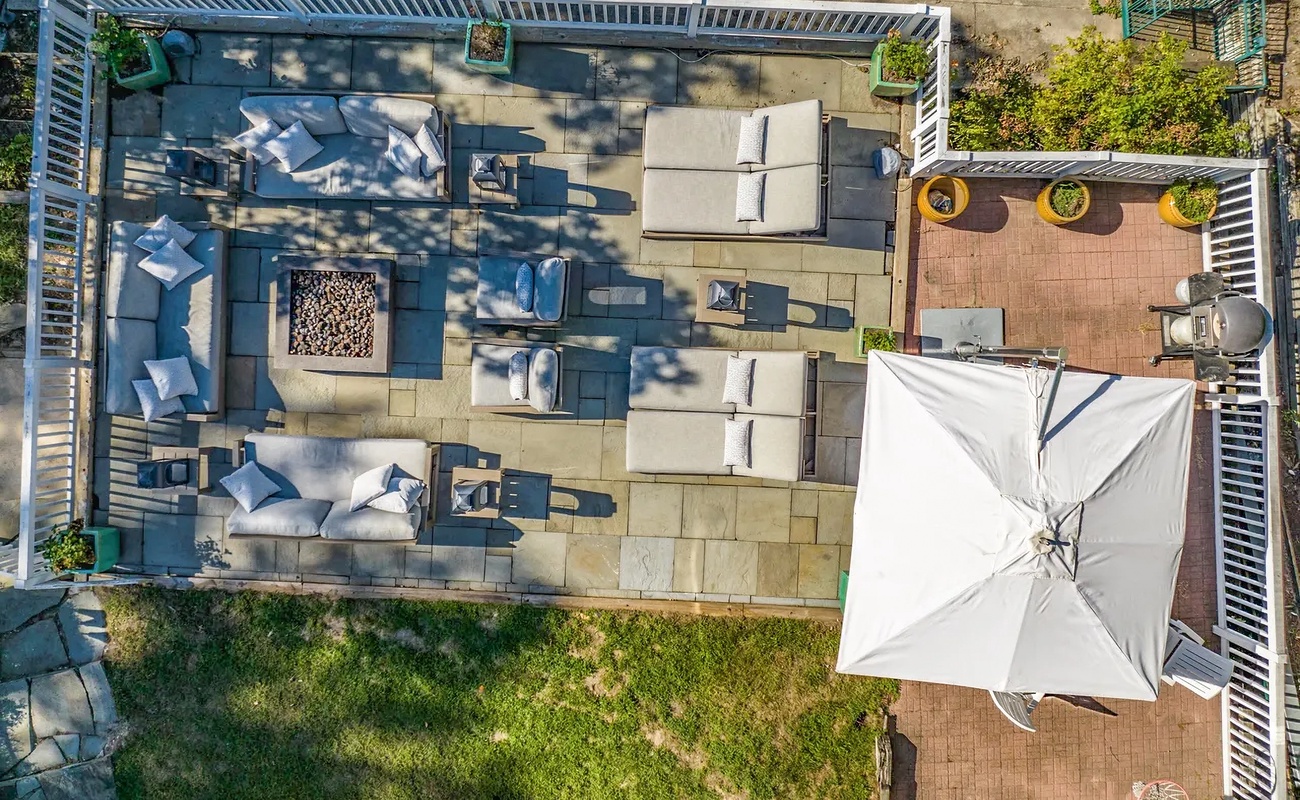 • Plush seating + outdoor dining surrounded by lush landscaping