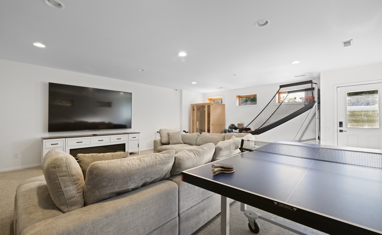 • Large sectional + TV for movie nights