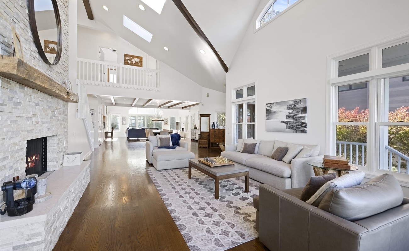 • Stone fireplace for cozy movie nights and holiday gatherings