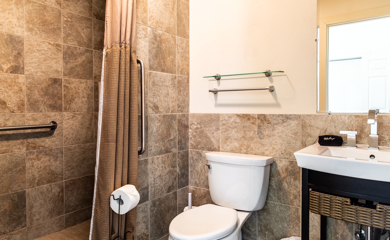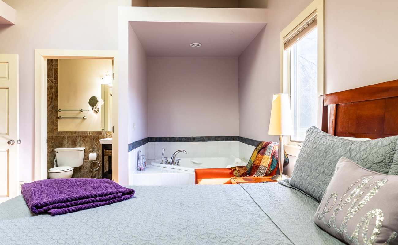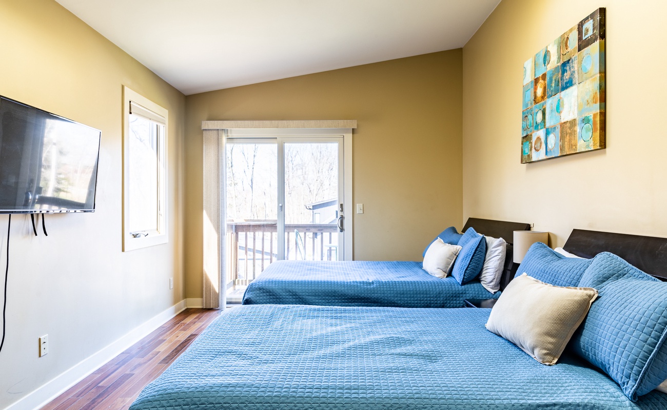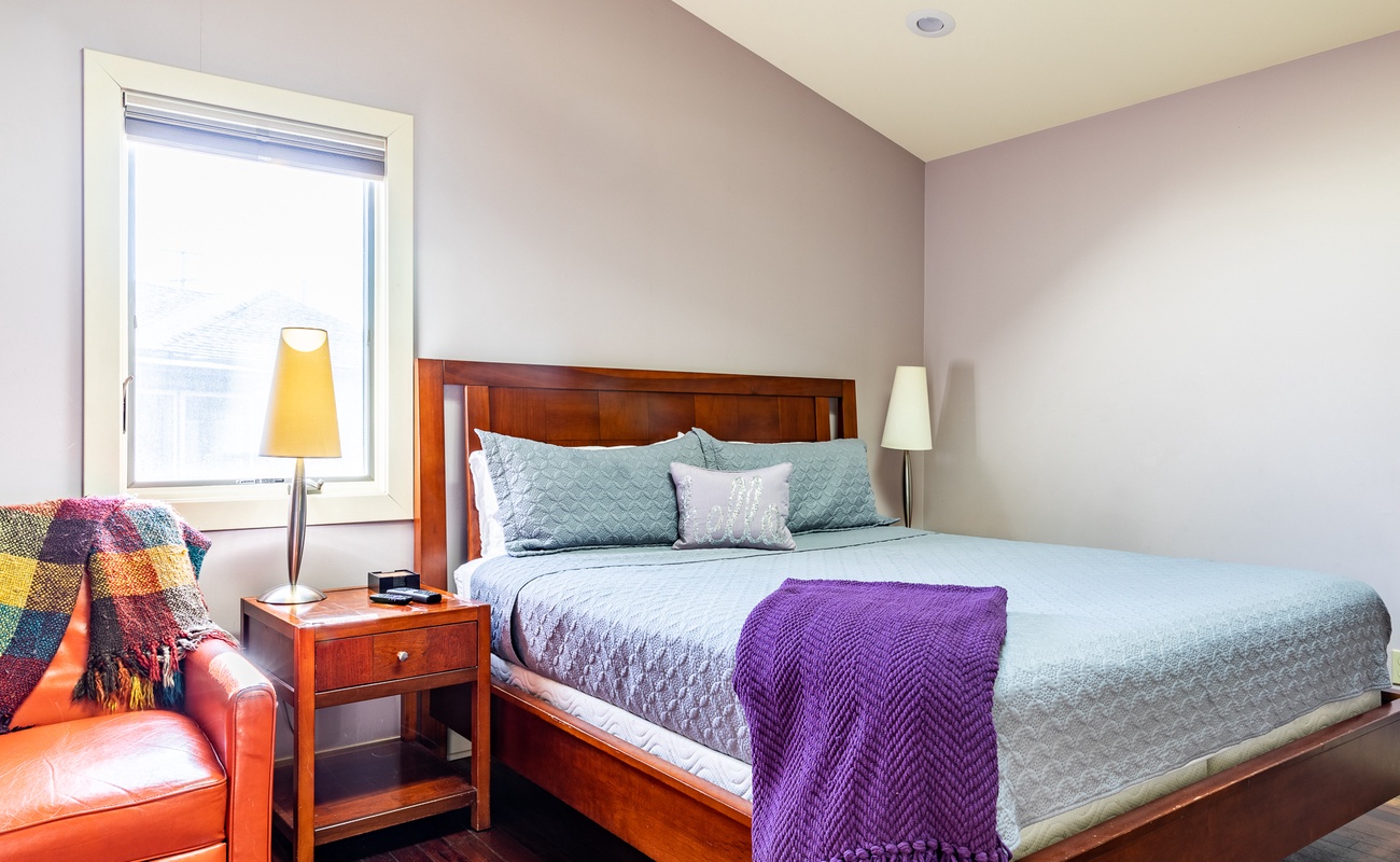 This single family, handicap-accessible home has tons of space for a large group and everyone can spread out. The main floor features two suites each with an in-room jacuzzi tub and full en-suite bathroom. Upstairs are the other three bedrooms each with an in-room TV and cozy beds and linens. The top floor also features one and a half full baths, access to a balcony deck and a cozy space for reading and relaxing.