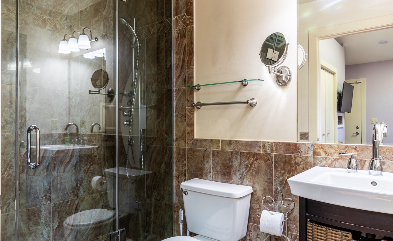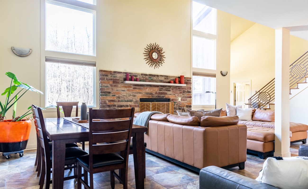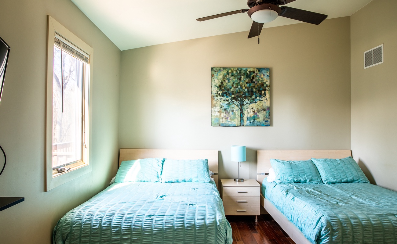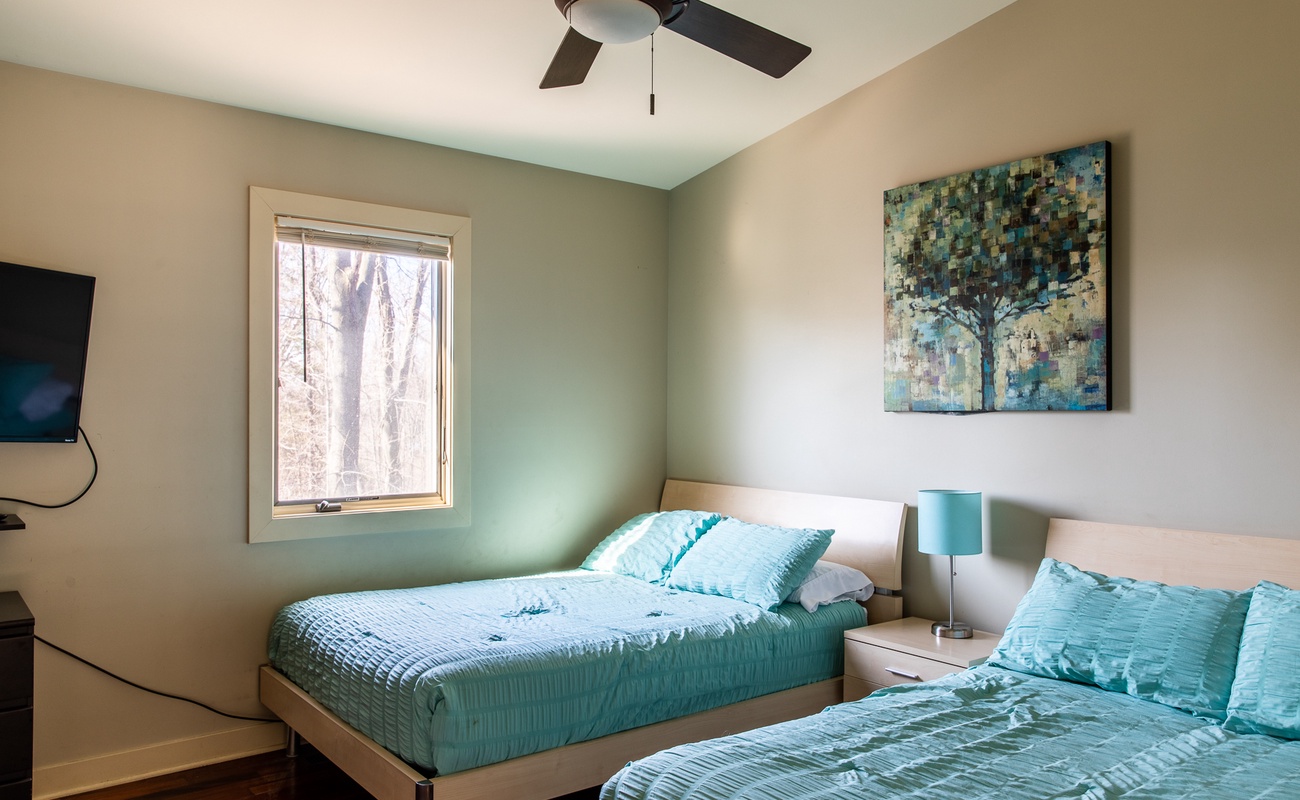 This single family, handicap-accessible home has tons of space for a large group and everyone can spread out. The main floor features two suites each with an in-room jacuzzi tub and full en-suite bathroom. Upstairs are the other three bedrooms each with an in-room TV and cozy beds and linens. The top floor also features one and a half full baths, access to a balcony deck and a cozy space for reading and relaxing.