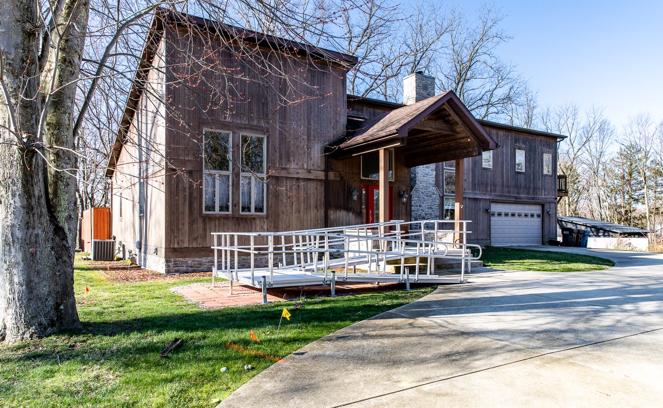 We can not state this is a handicap accessible house but there is a ramp on the front steps, large door access and two main bedrooms on the main floor. Please contact us for questions on the viability of the property if needed.