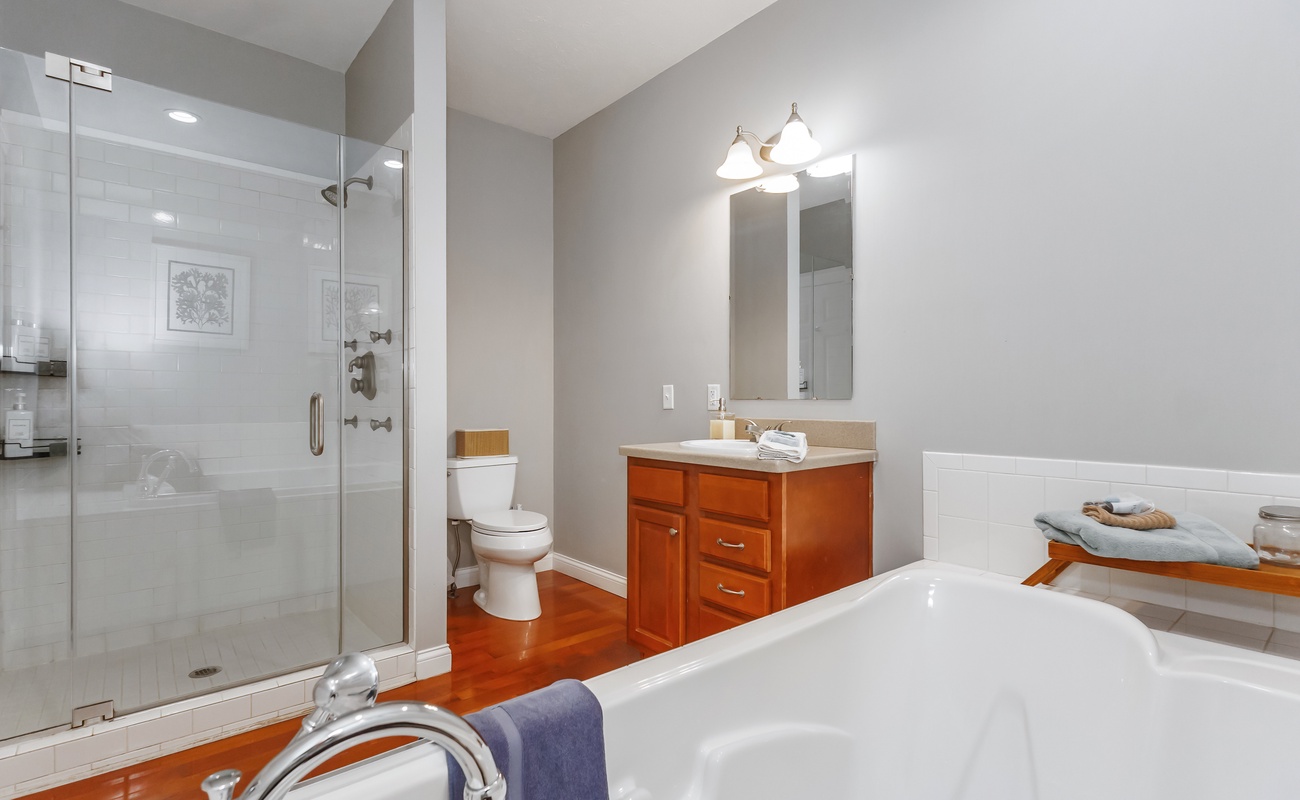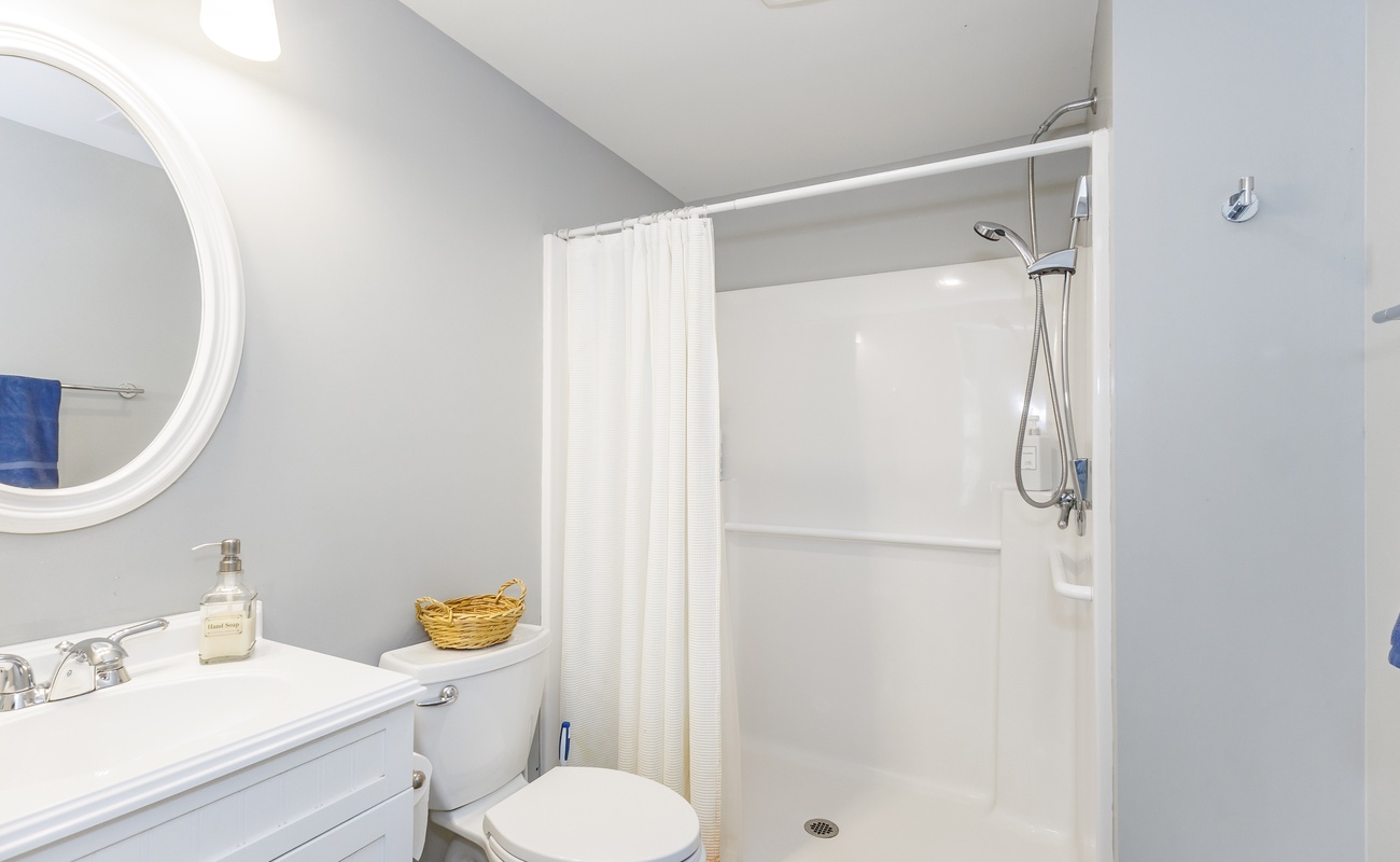 Luxurious lower level suite with Jacuzzi tub and rainfall shower with jets