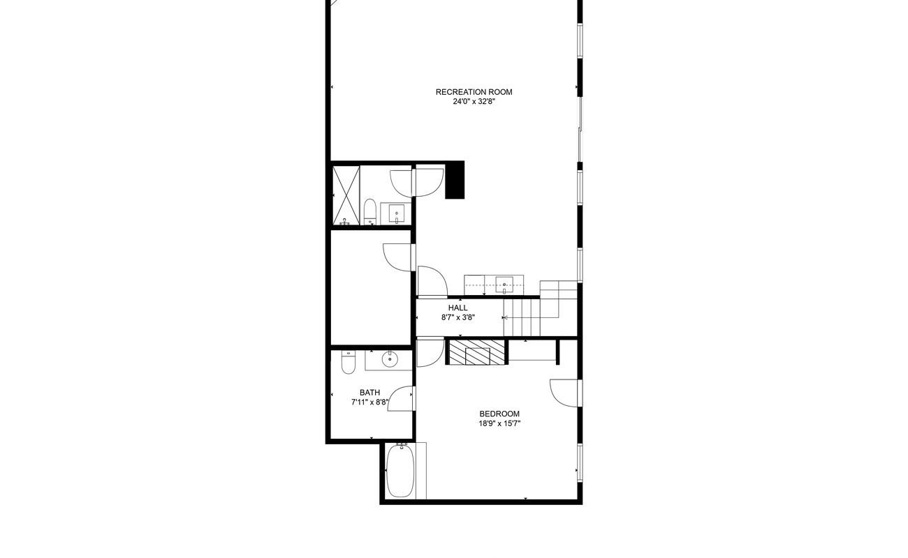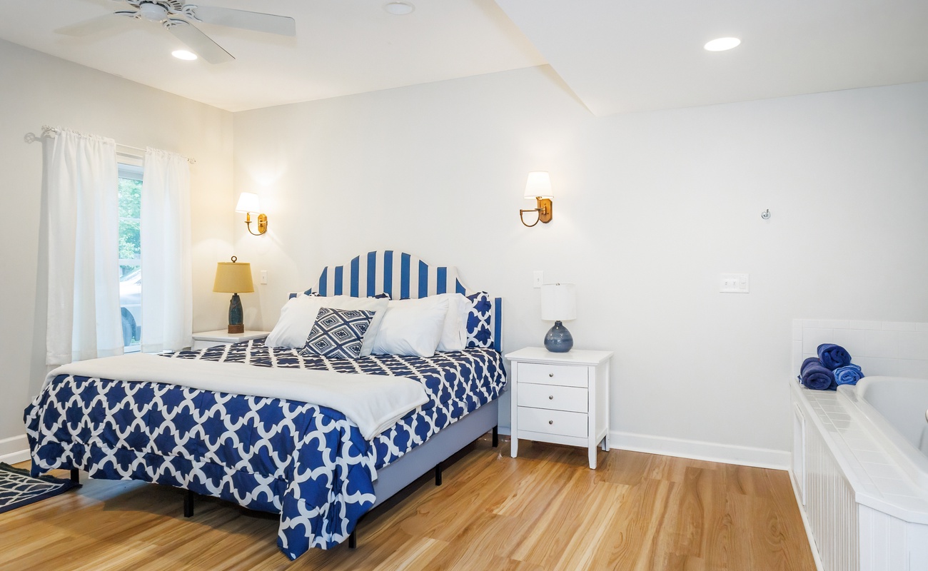 Lower level bedroom with ensuite bathroom and jacuzzi tub