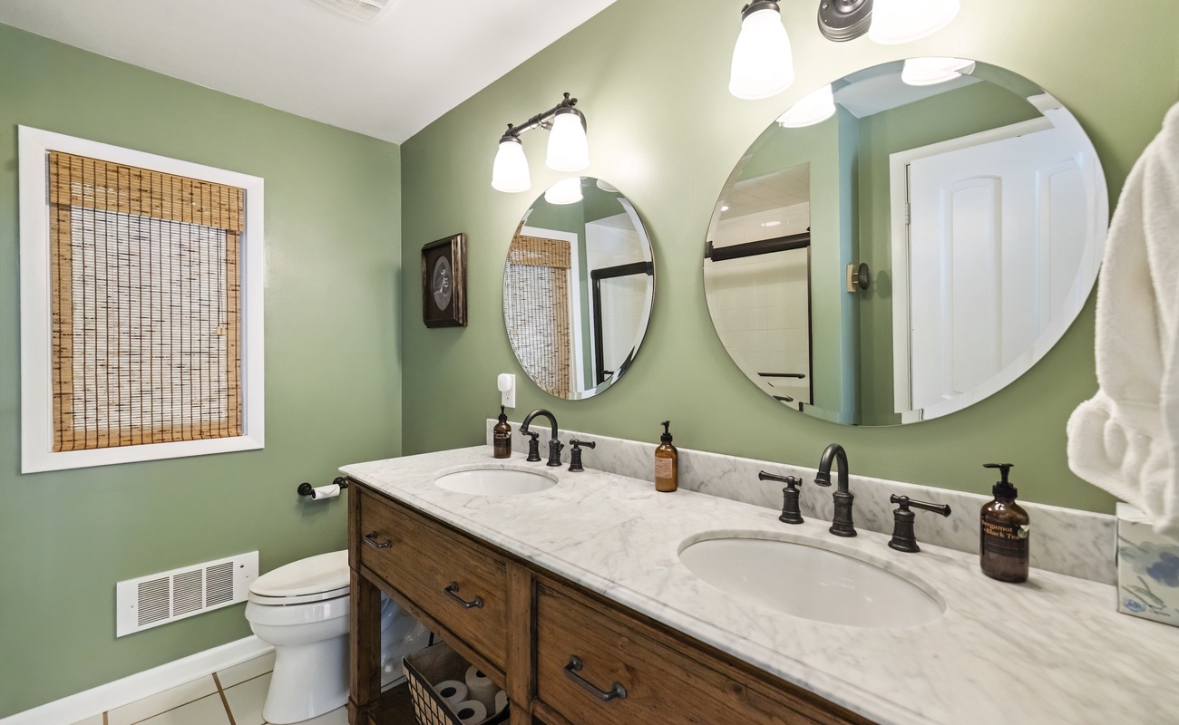 Access to shared upstairs bath with double vanity and tub/shower combo