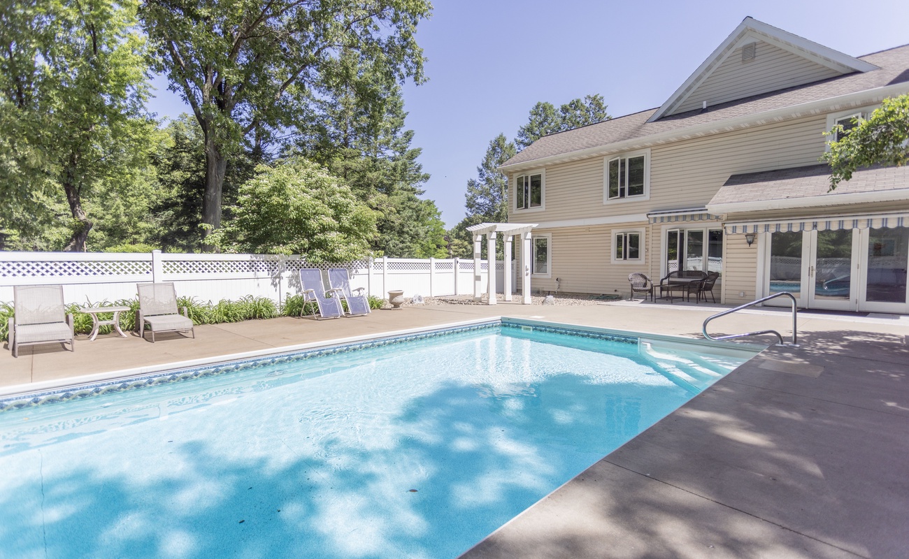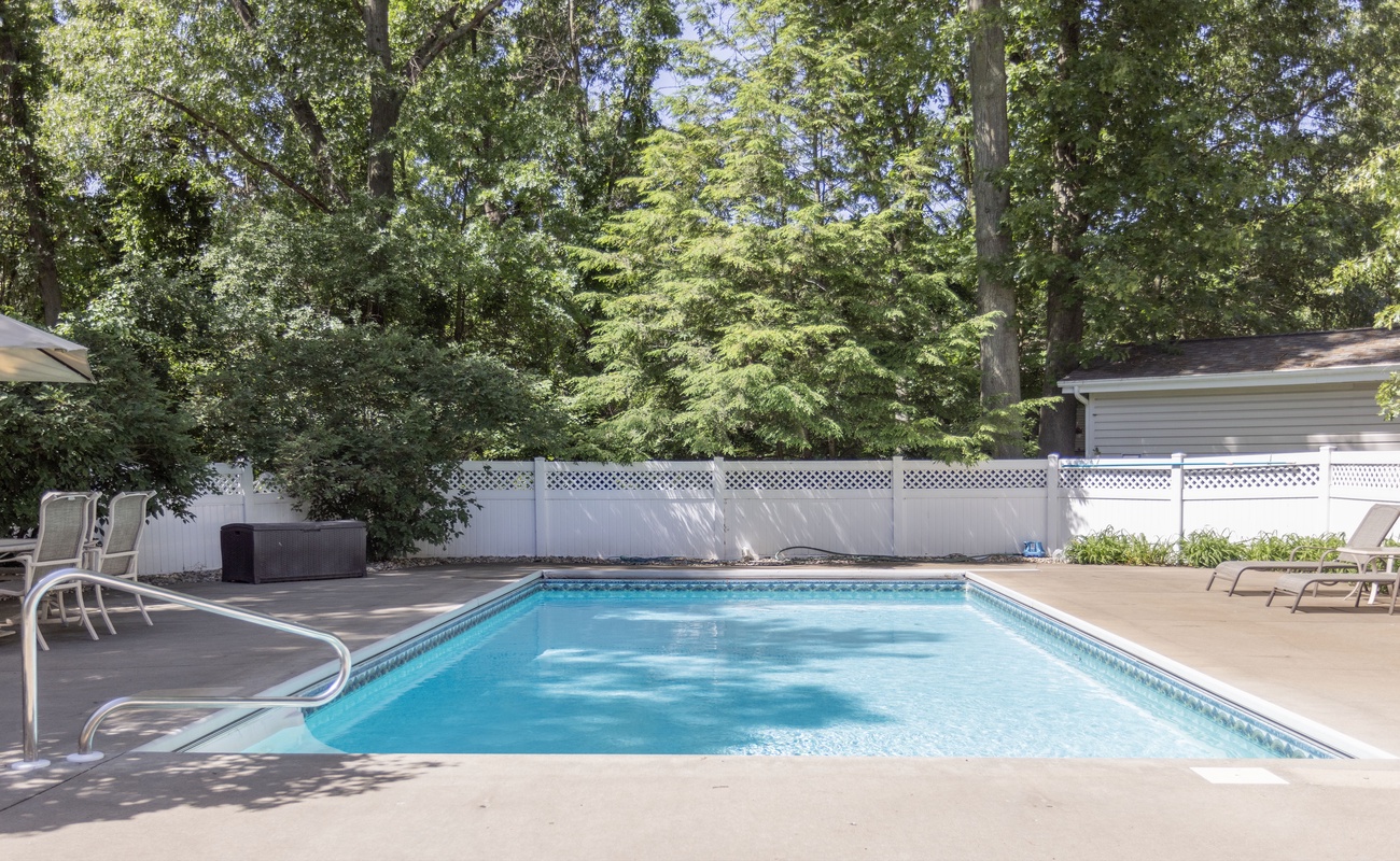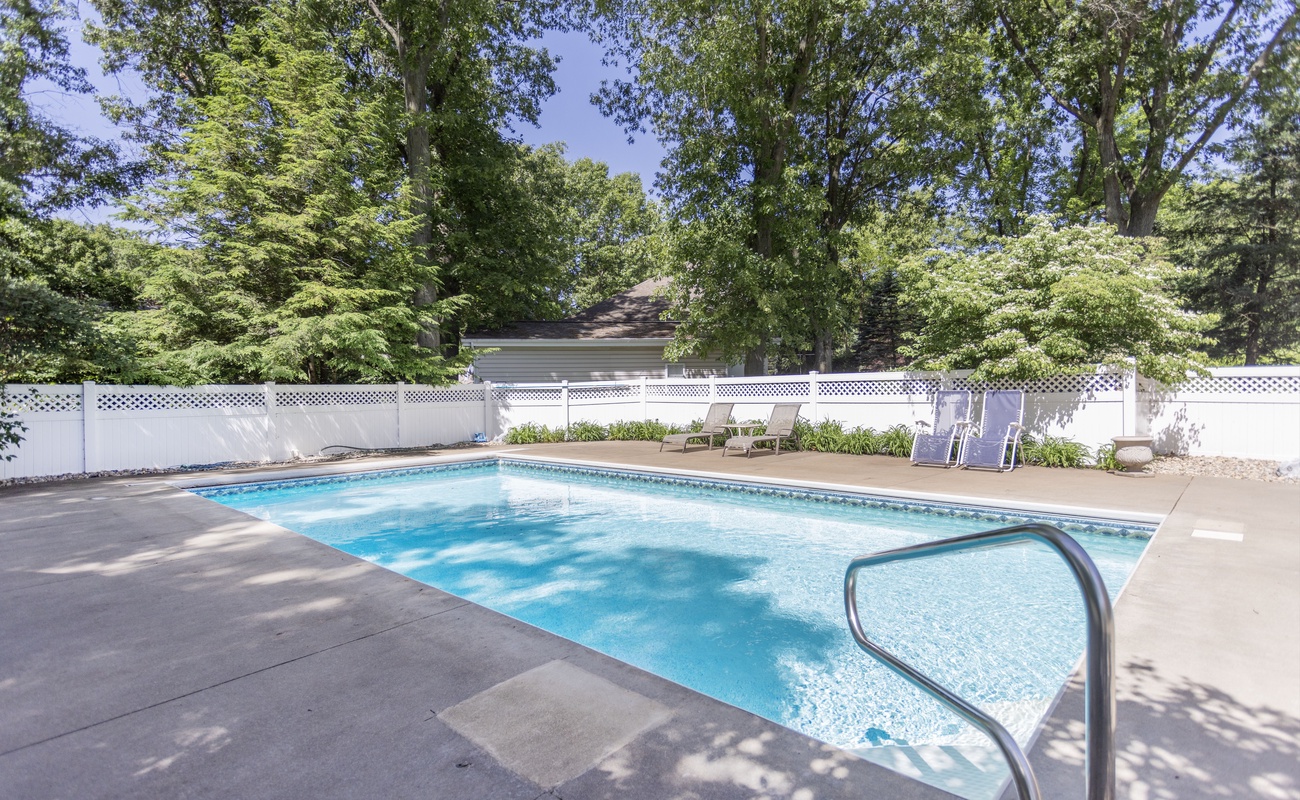 Welcome to Michigan Shores Pool Retreat, formerly known as Dogwood Pool House, a thoughtfully refreshed vacation home in the Michigan Shores community, just a short walk from a private association beach. Designed for year-round enjoyment, this inviting retreat blends comfort, space, and relaxed Harbor Country living, making it an ideal setting for families and group getaways.