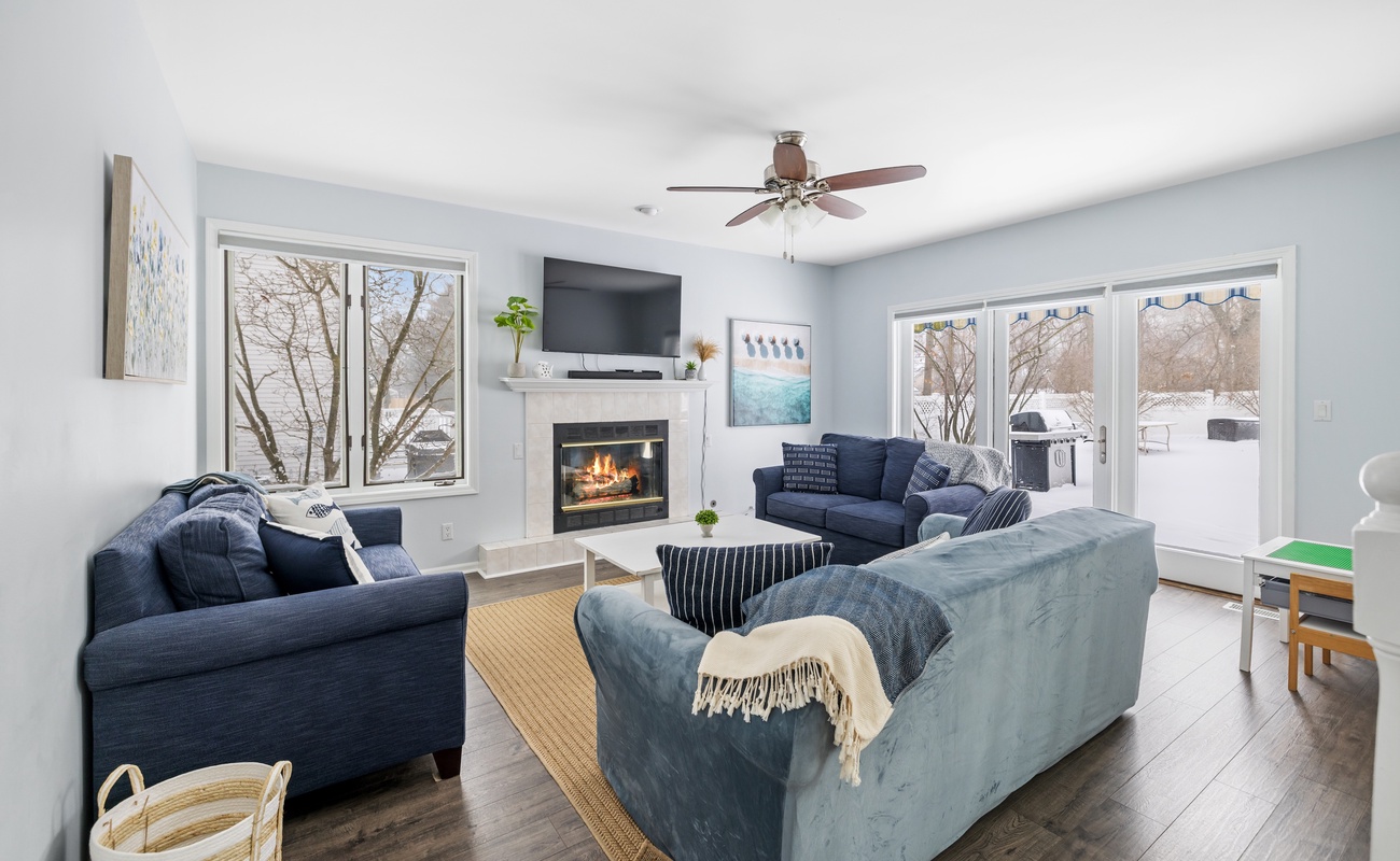 Comfortable seating and an easy-to-use fireplace