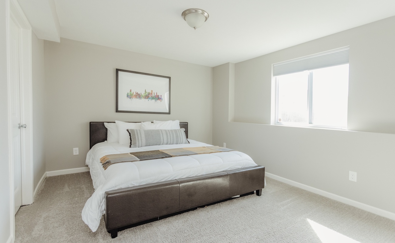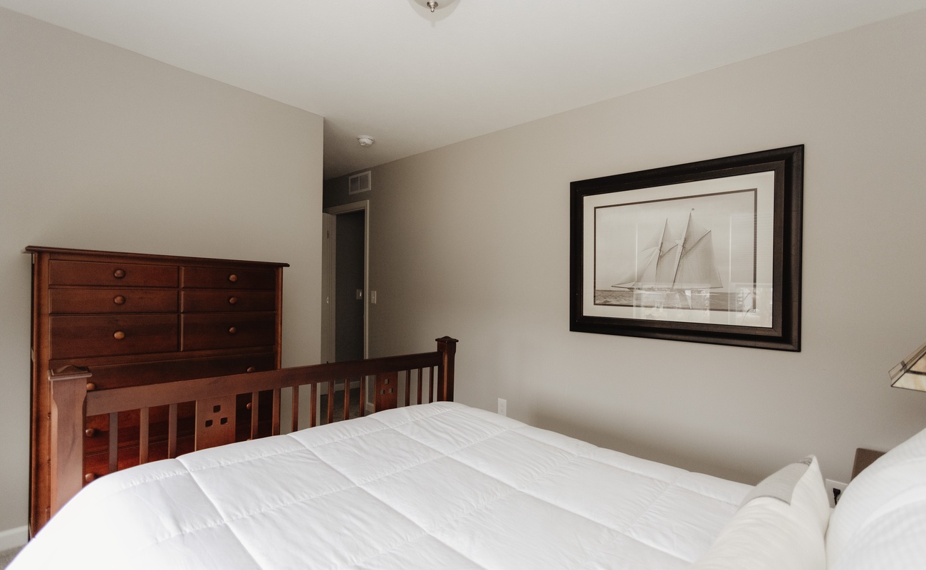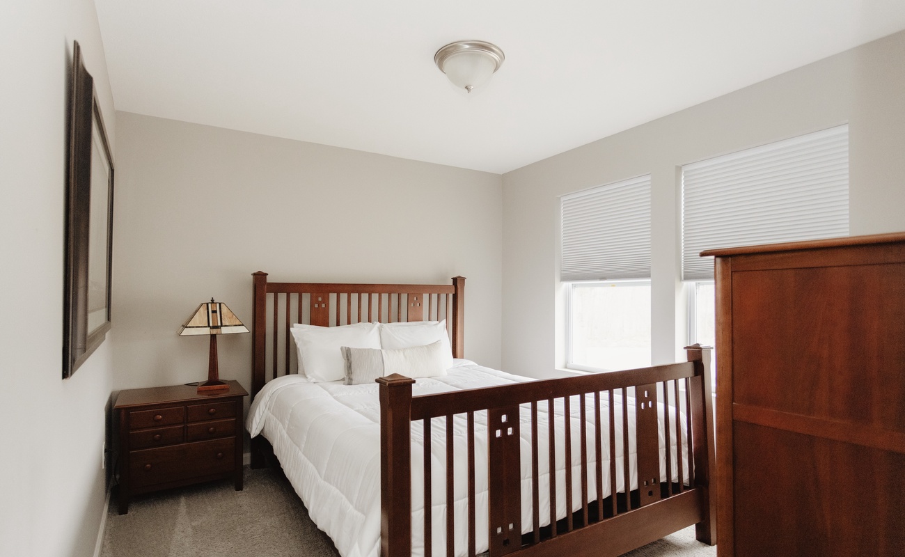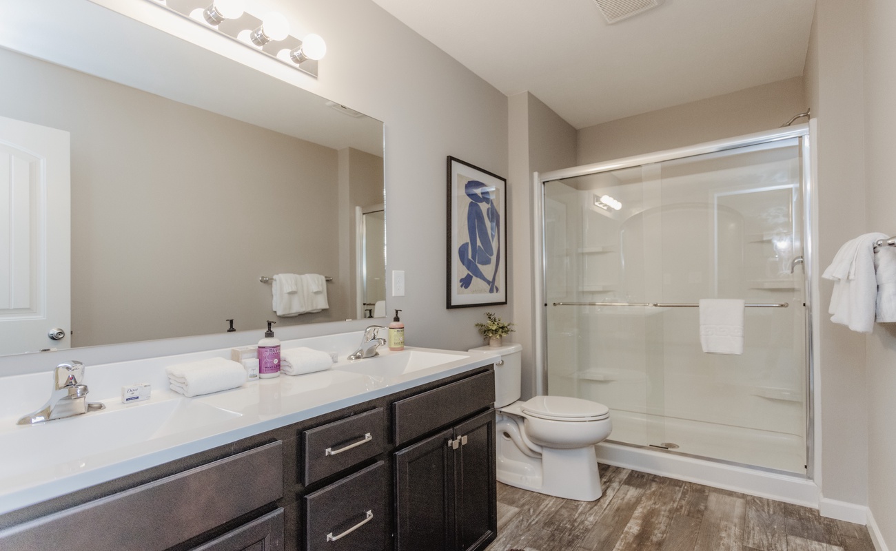 The bedrooms are scattered around the first and third levels of the home. The first level features a nice family room with a sectional in front of a Smart TV, a private bedroom, and a full bath with a standalone shower. The remaining four bedrooms, along with two full baths and a laundry room are located on the upper level of the home. The main bedroom has its own en suite bath with a standalone shower, while the other three bedrooms (one of them being a bunk room) share a full bath in the hallway.