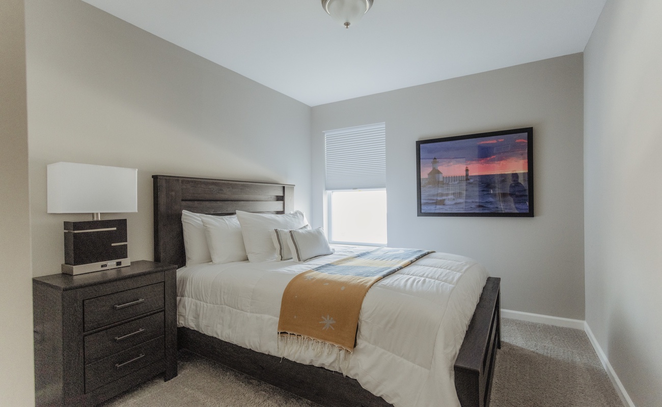 The nearest beach is the New Buffalo Public Beach at the end of Whittaker Rd, 2.5 miles north. You can drive and park, please note there is a fee to park that you can pay with a card at their on site kiosk.