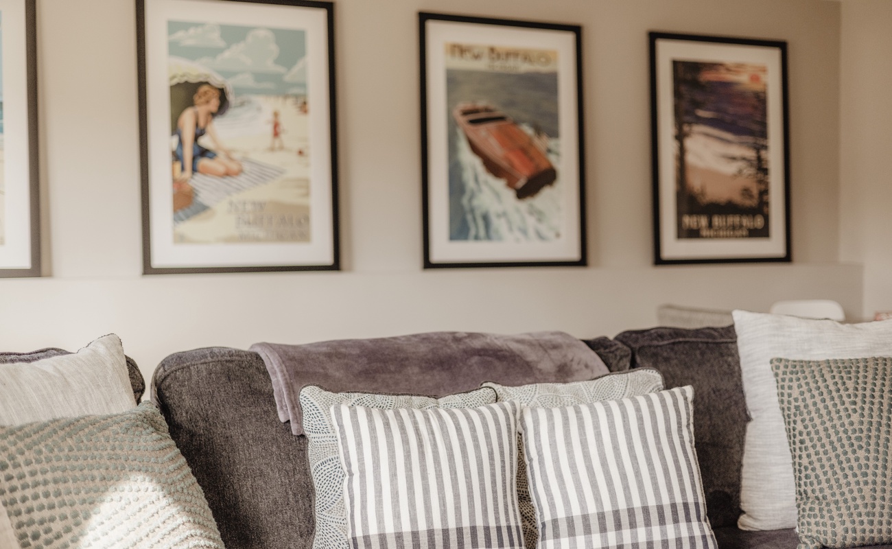 Located in a cul-de-sac near Forest Beach in New Buffalo Township, this brand new home has been completed in 2021, featuring new furnishings, beds, TVs, appliances, and so much more!