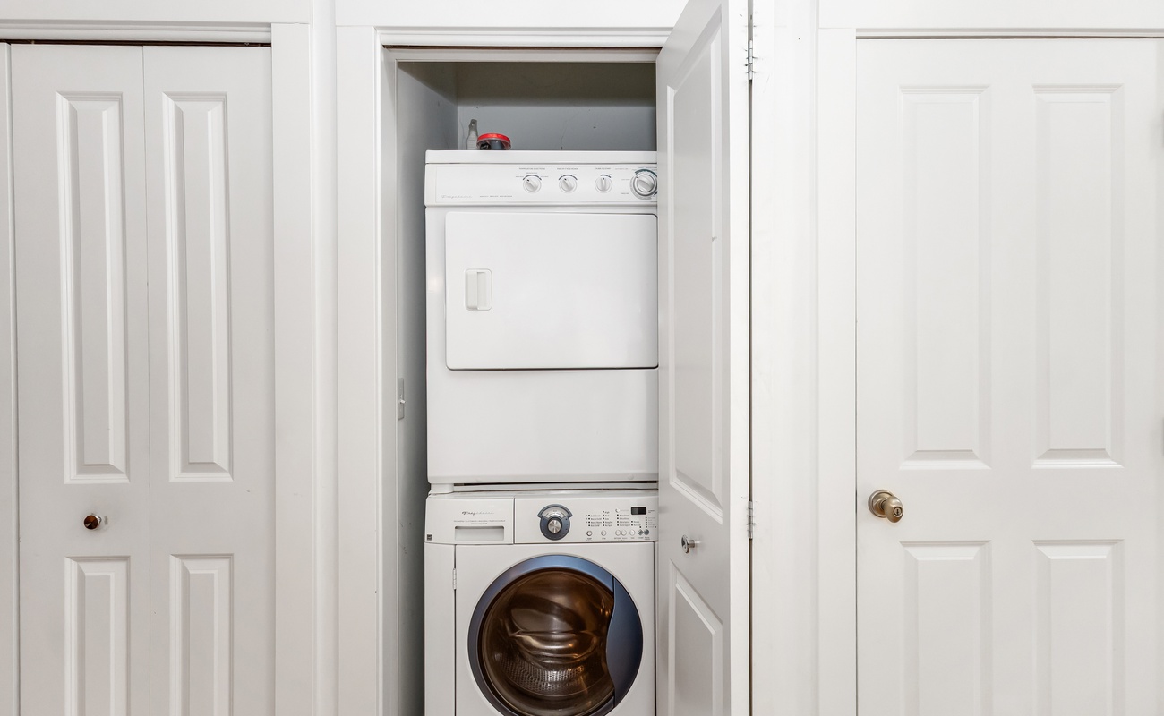 Washer + dryer with starter pods for your swimsuits and sandy clothes