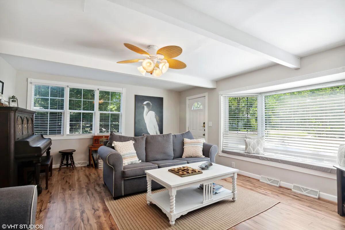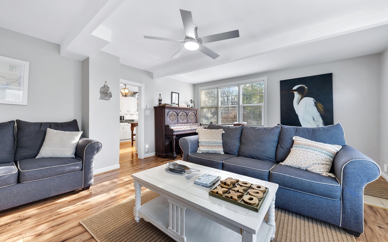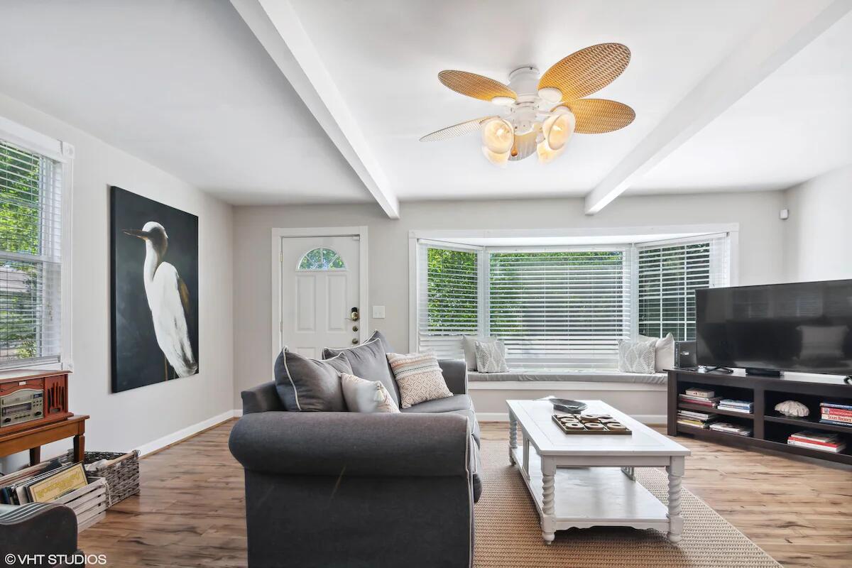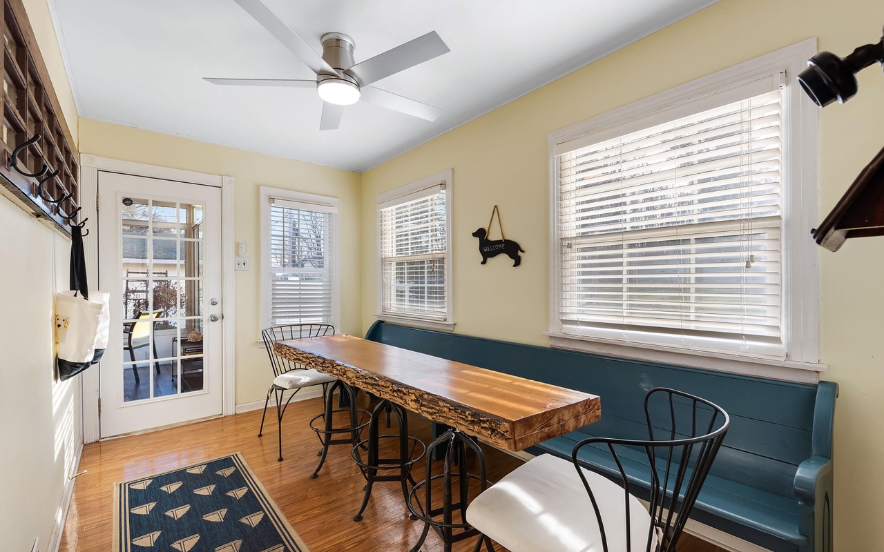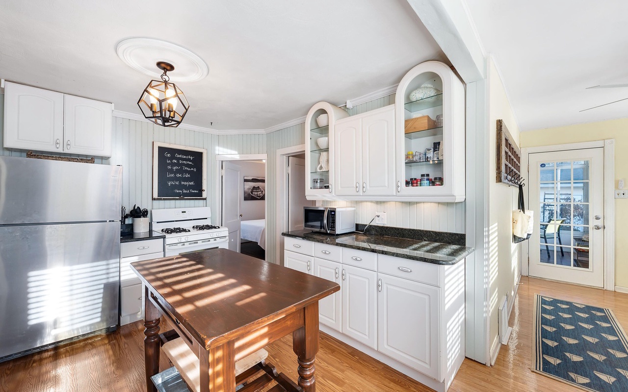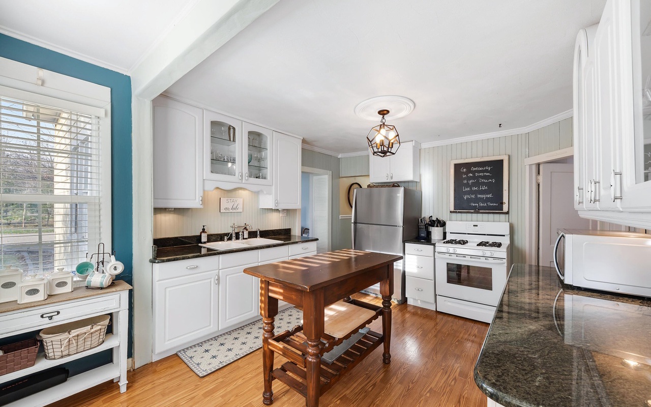 Beautiful 4 BR 2 BA home in the heart of New Buffalo with a private pool and hot tub! This private oasis offers a light-filled living area with a large bay window, a well-appointed kitchen, and a dining area that leads to the sunroom.