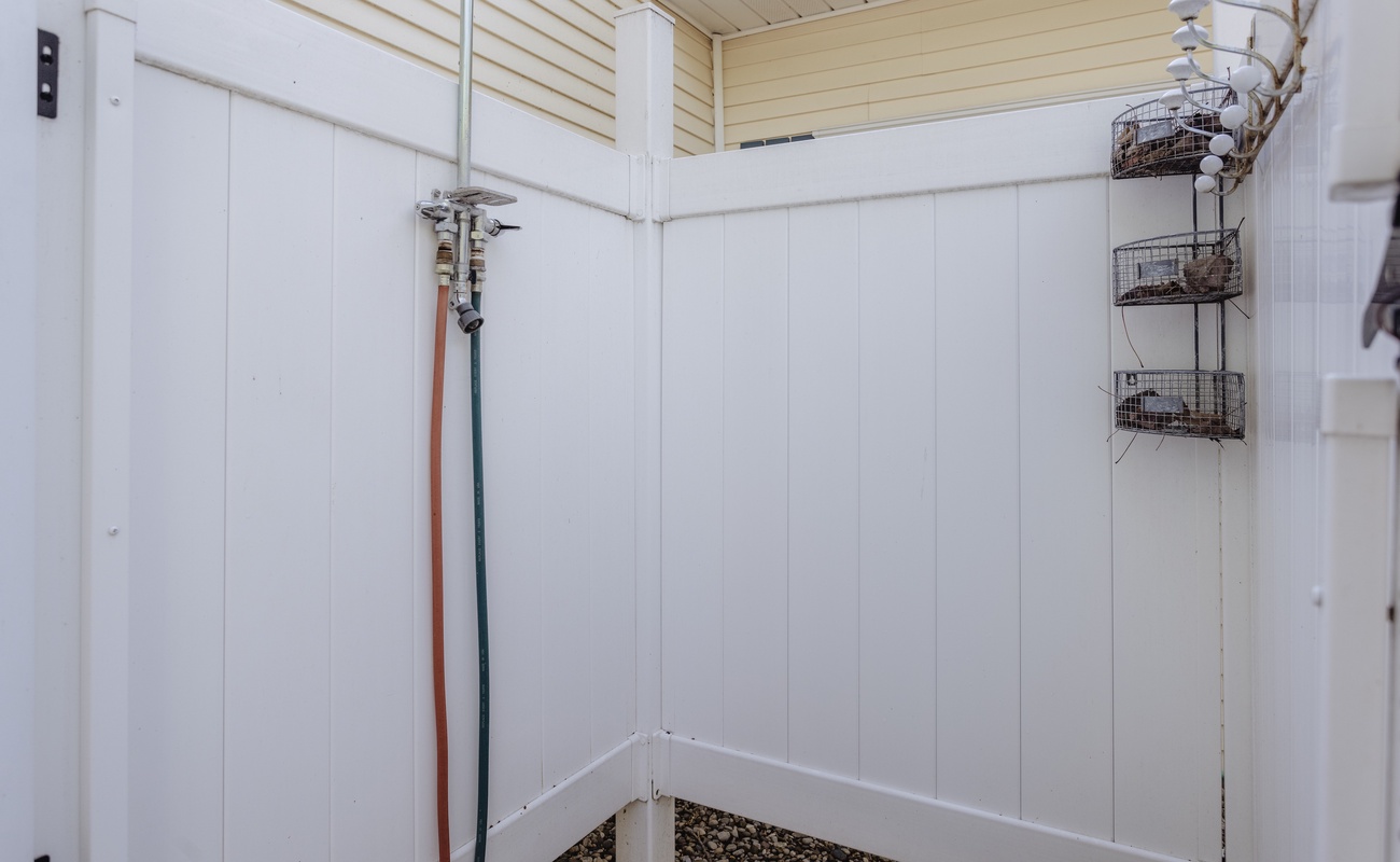 Outdoor shower to rinse off sandy feet after the beach