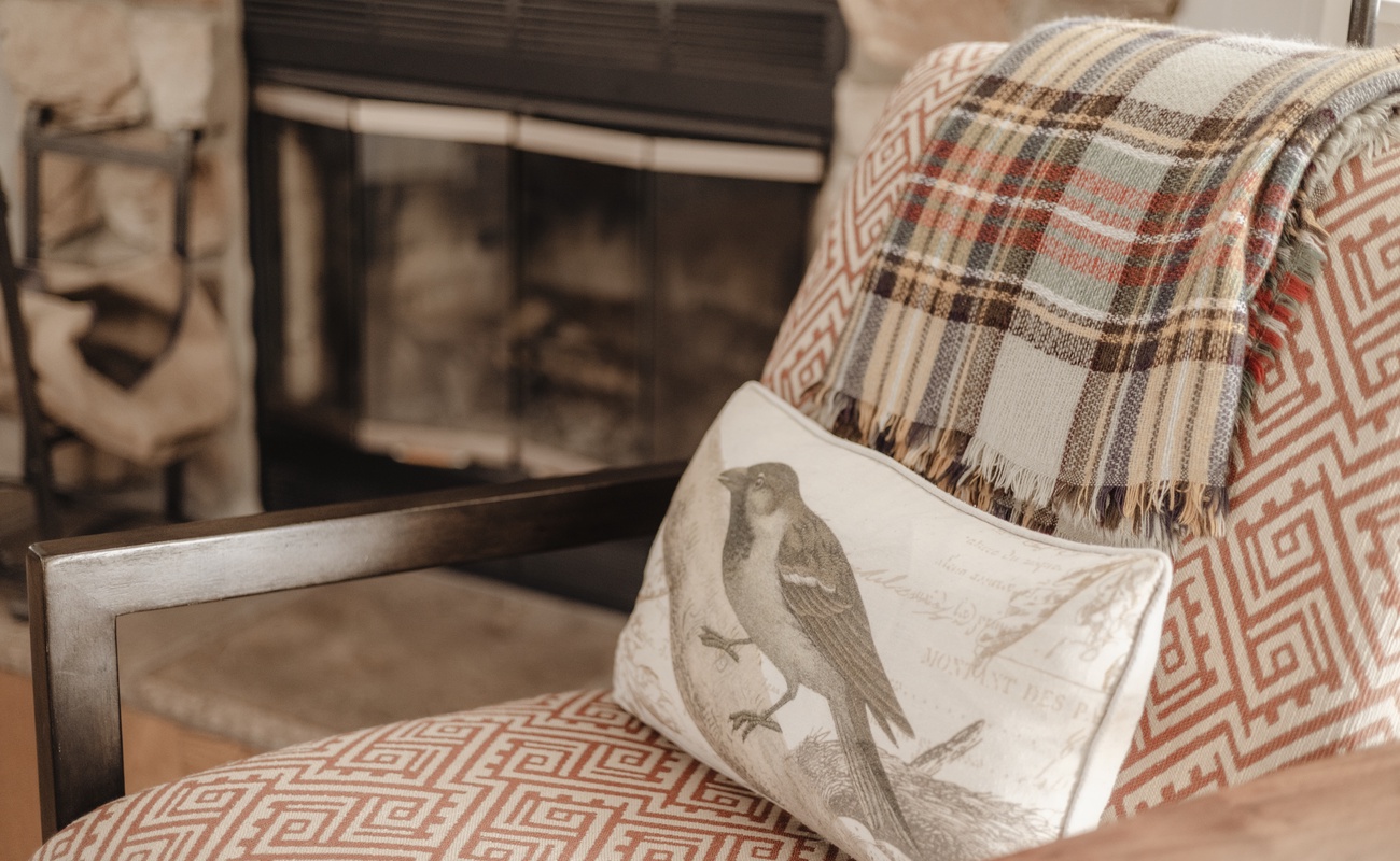 Warm, inviting space with a wood-burning fireplace