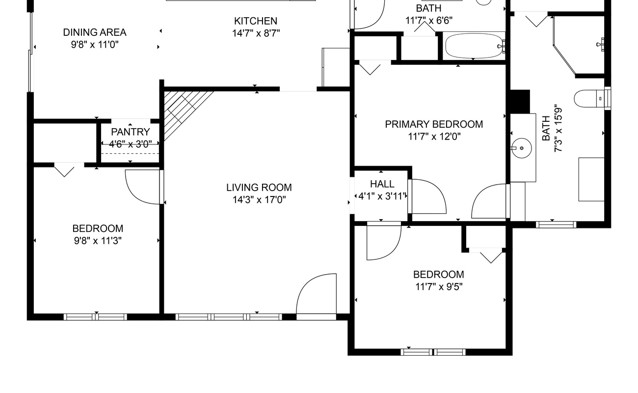 single story home Full bath with shower en suite