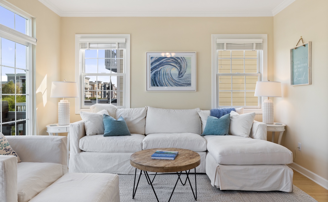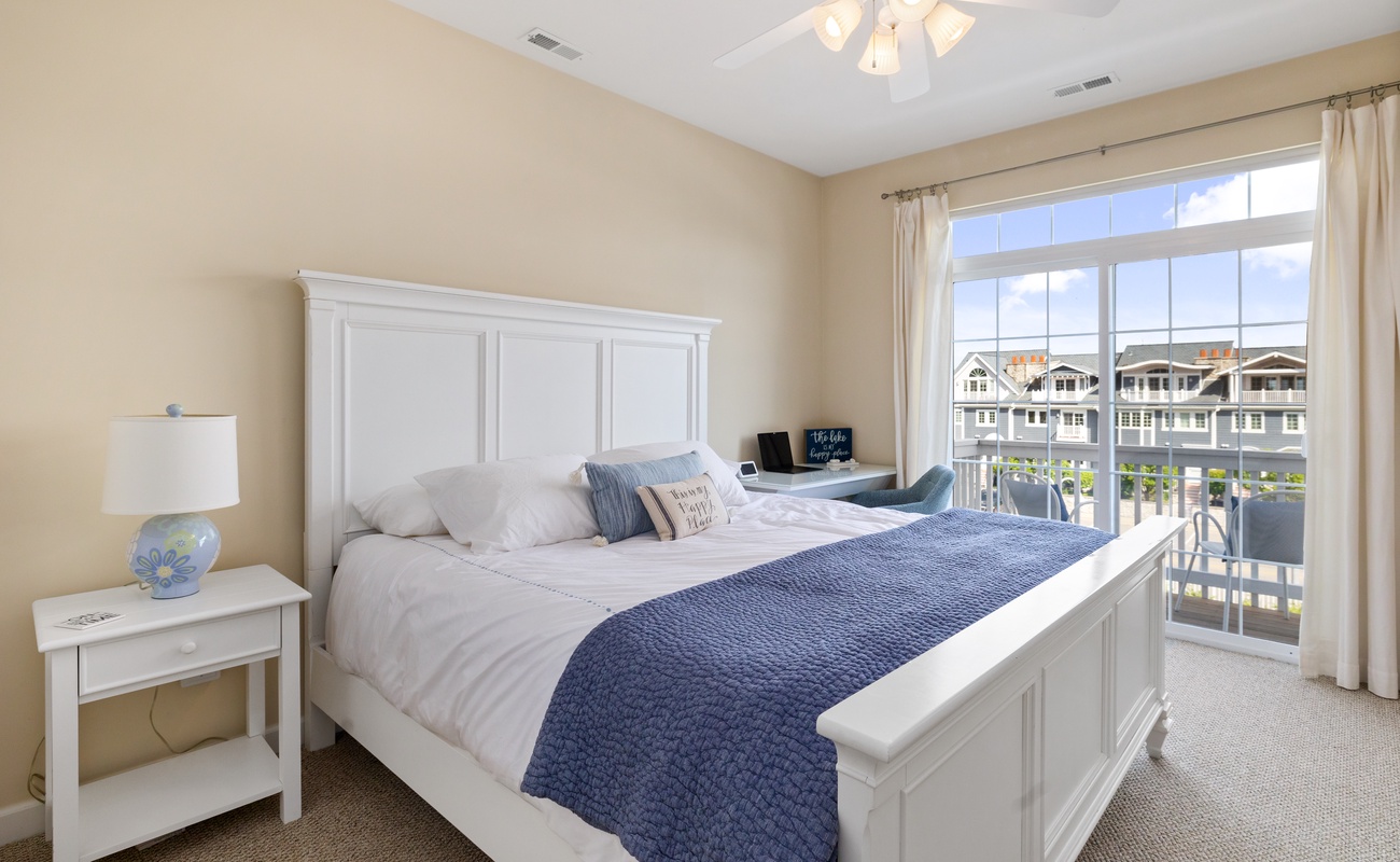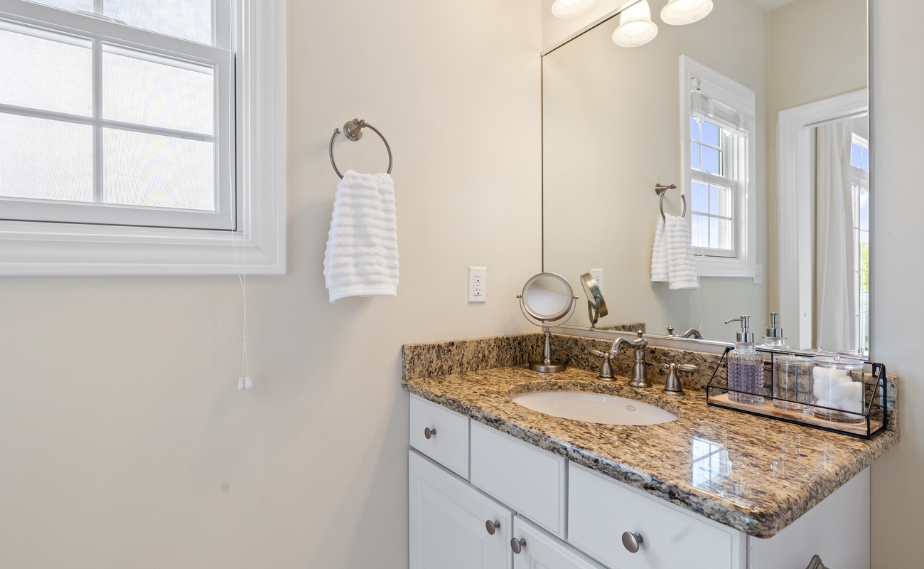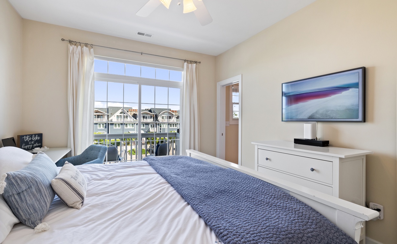 The primary bedroom features a cozy King bed and ensuite full bathroom for a private retreat! A second bedroom features a Queen bed and the lower level can sleep three in two twin beds and a trundle. Each bedroom has smart TVs with Roku and a desk so you can unwind and watch your favorite show or get a little work done (if you must).