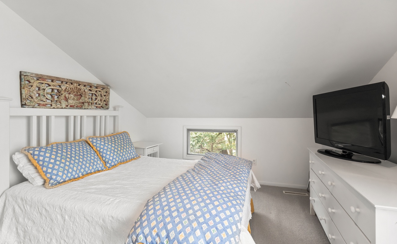 Bedroom on upper level of home. It shares a full bathroom with two additional bedrooms.