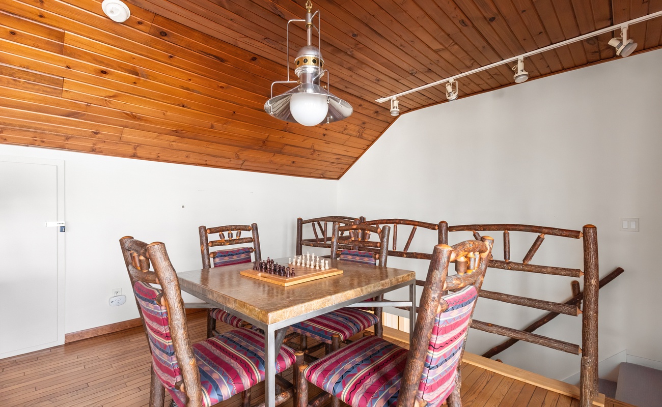 Upstairs, you’ll find a large rec room with even more stunning views of the lake, a smart TV for movie nights, and plenty of space to unwind. This level also offers three comfortable bedrooms, each with a queen bed, providing serene and stylish accommodations for your entire group.