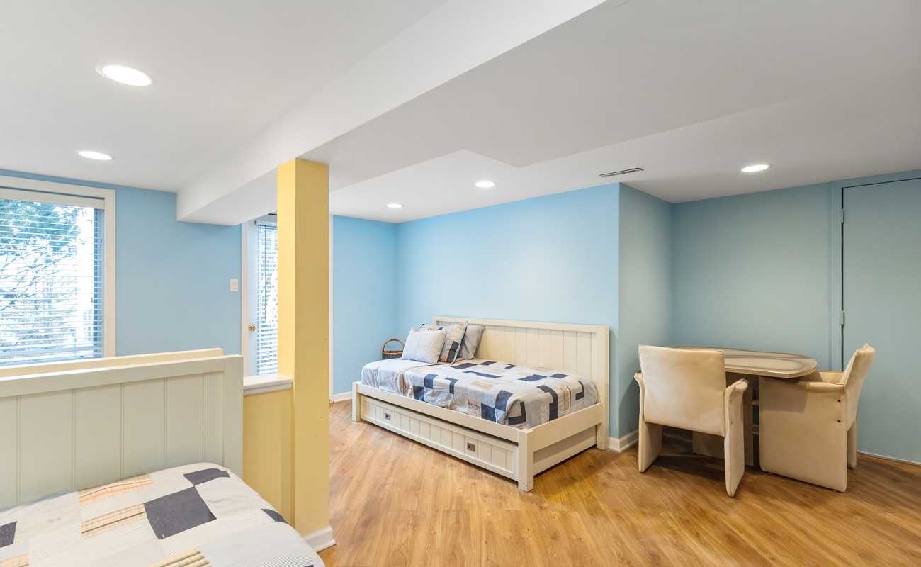 The lower level is perfect for kids or extra guests, with three trundle twin beds and a full bathroom.