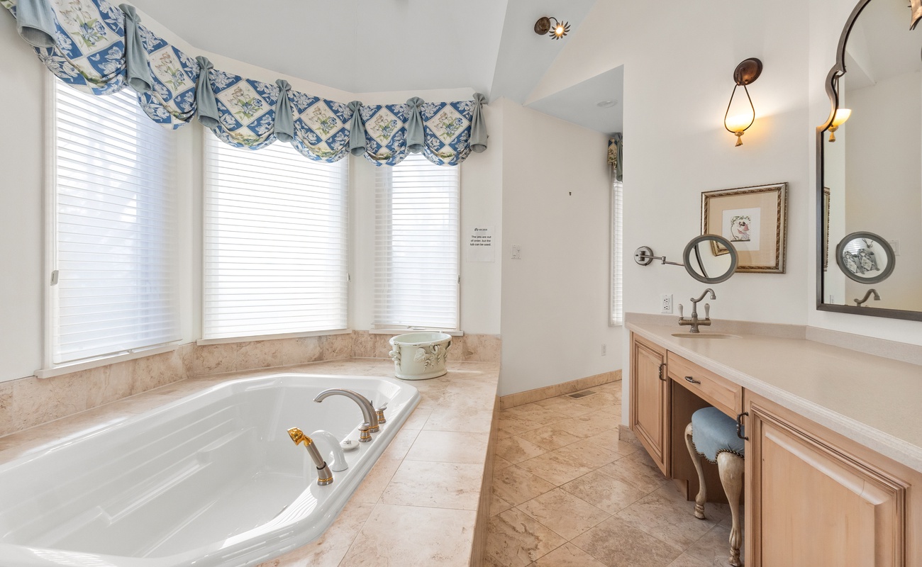 Massive Primary Suite with King Bed, Soaker Tub & Custom Shower