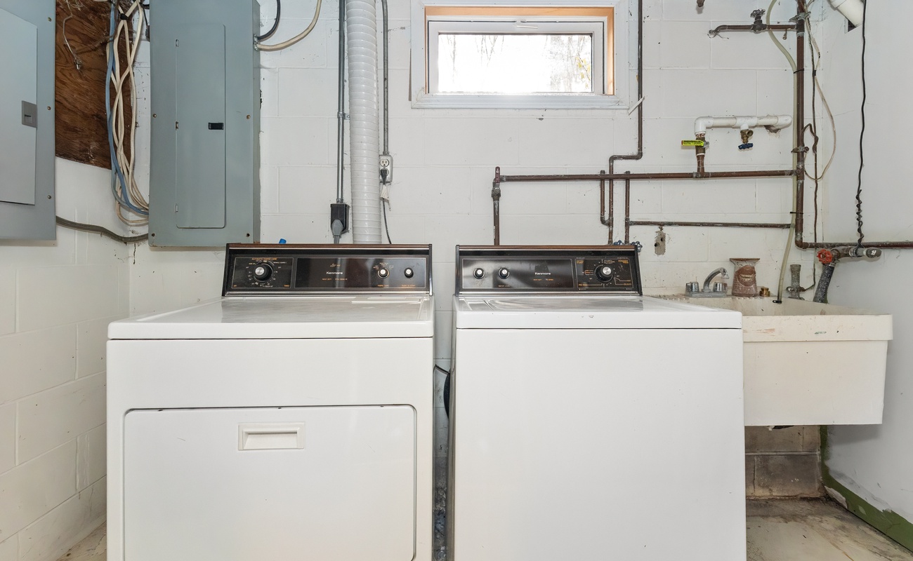 Bedroom is located in the lower level of home. Three trundle beds share the lower level bathroom that has stand up shower. The laundry room is also on this level. There is no door between this level and the main level.
