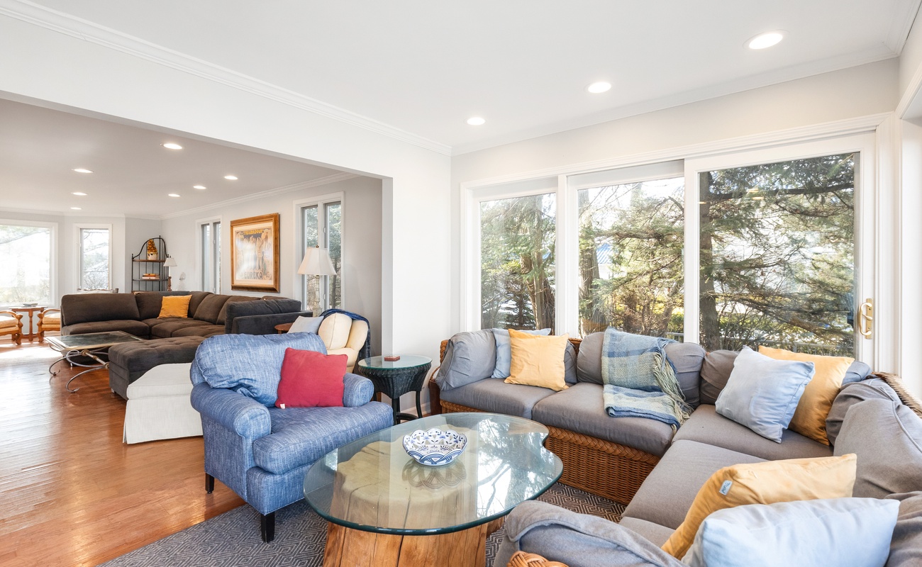 Large Rec Room with Smart TV & Lake Views