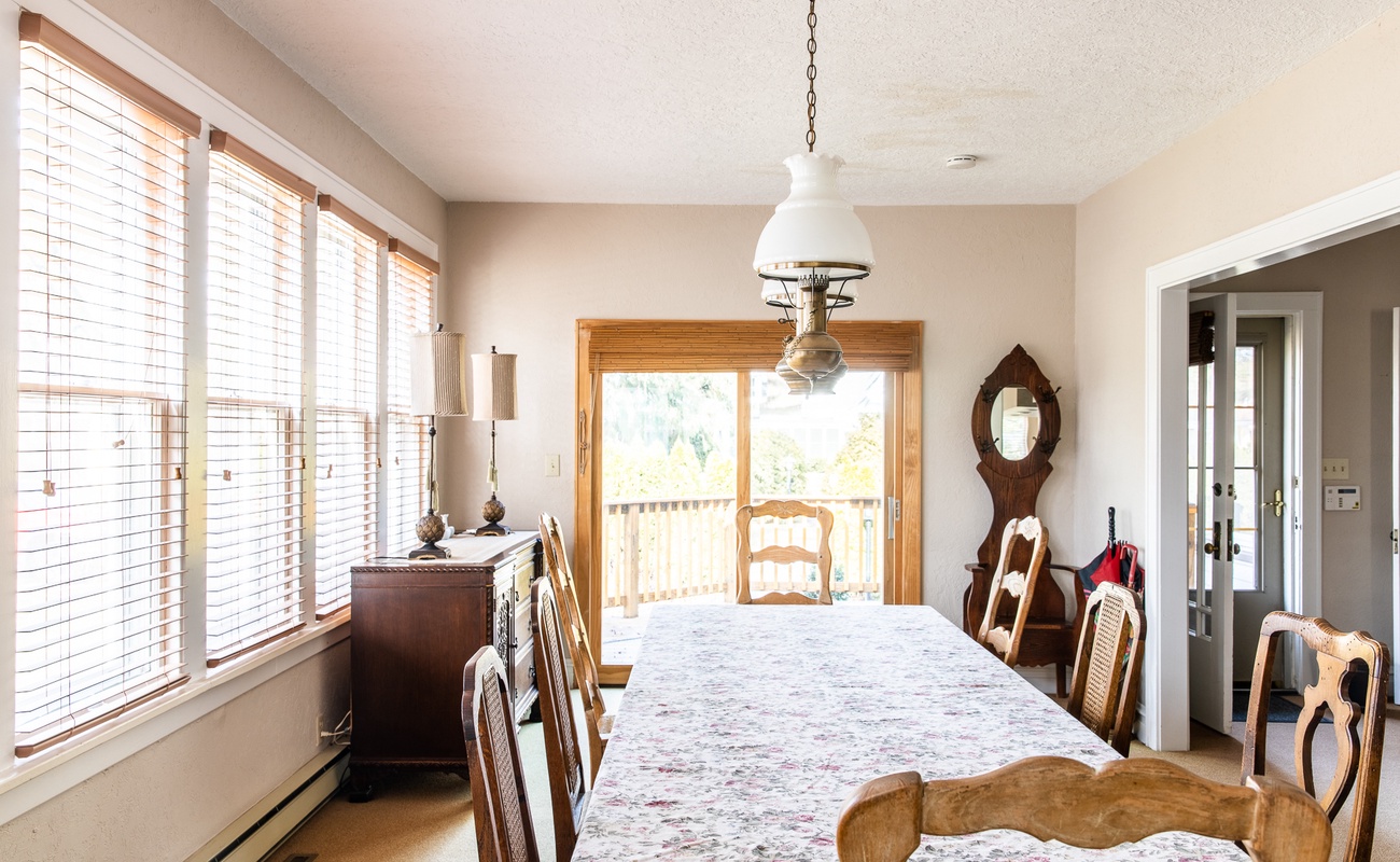 When you enter the home you'll be in a spacious open living area with views into the kitchen. Off the right of the front entry is a large dining room bathed in natural light with seating for 8. Off to the left of the front entry is a large living area with comfortable seating centered around a fireplace.