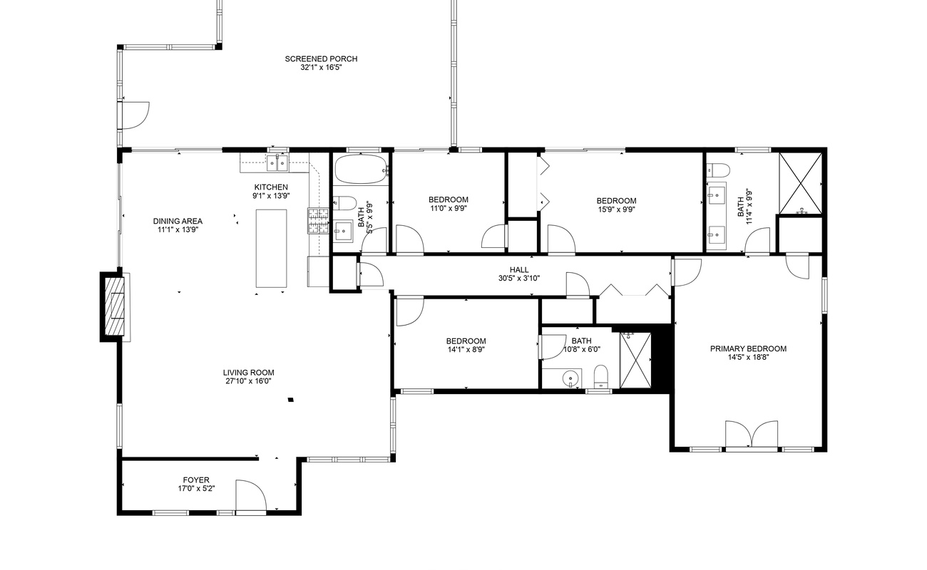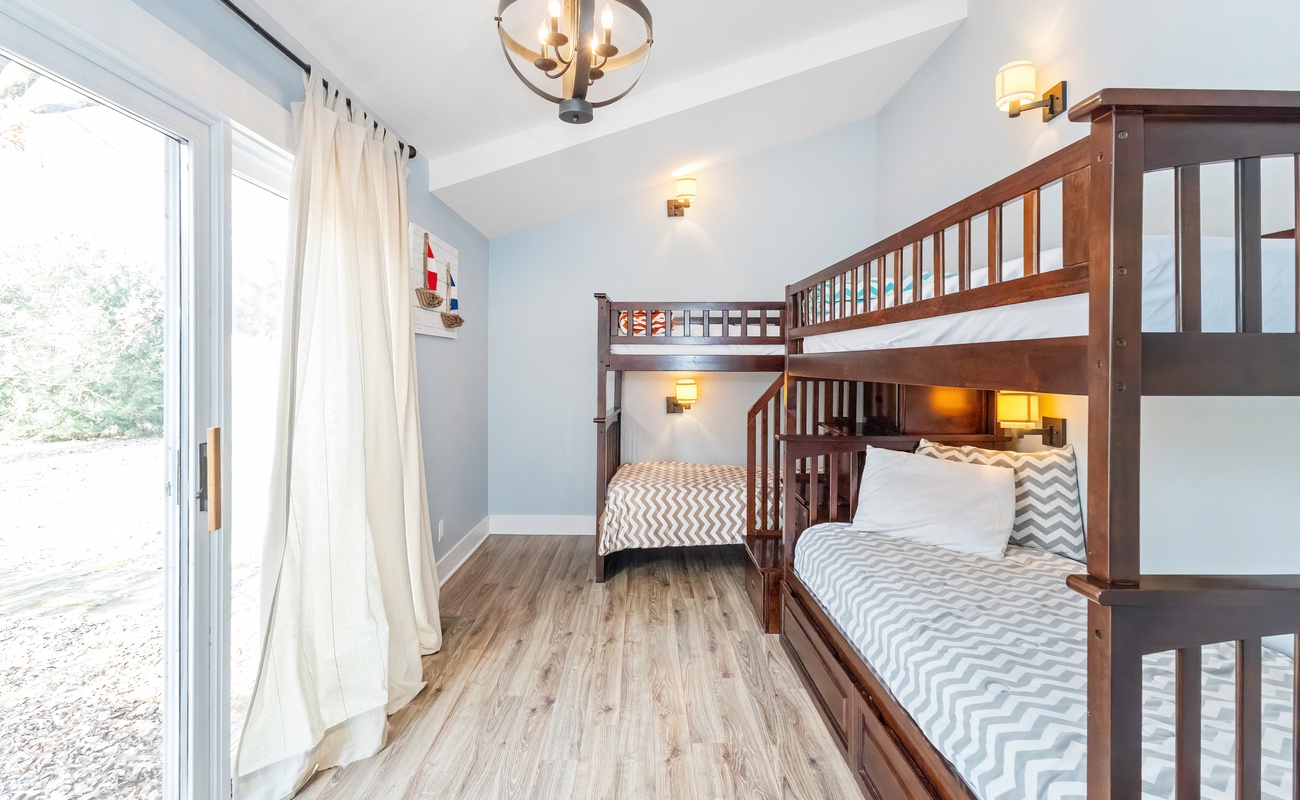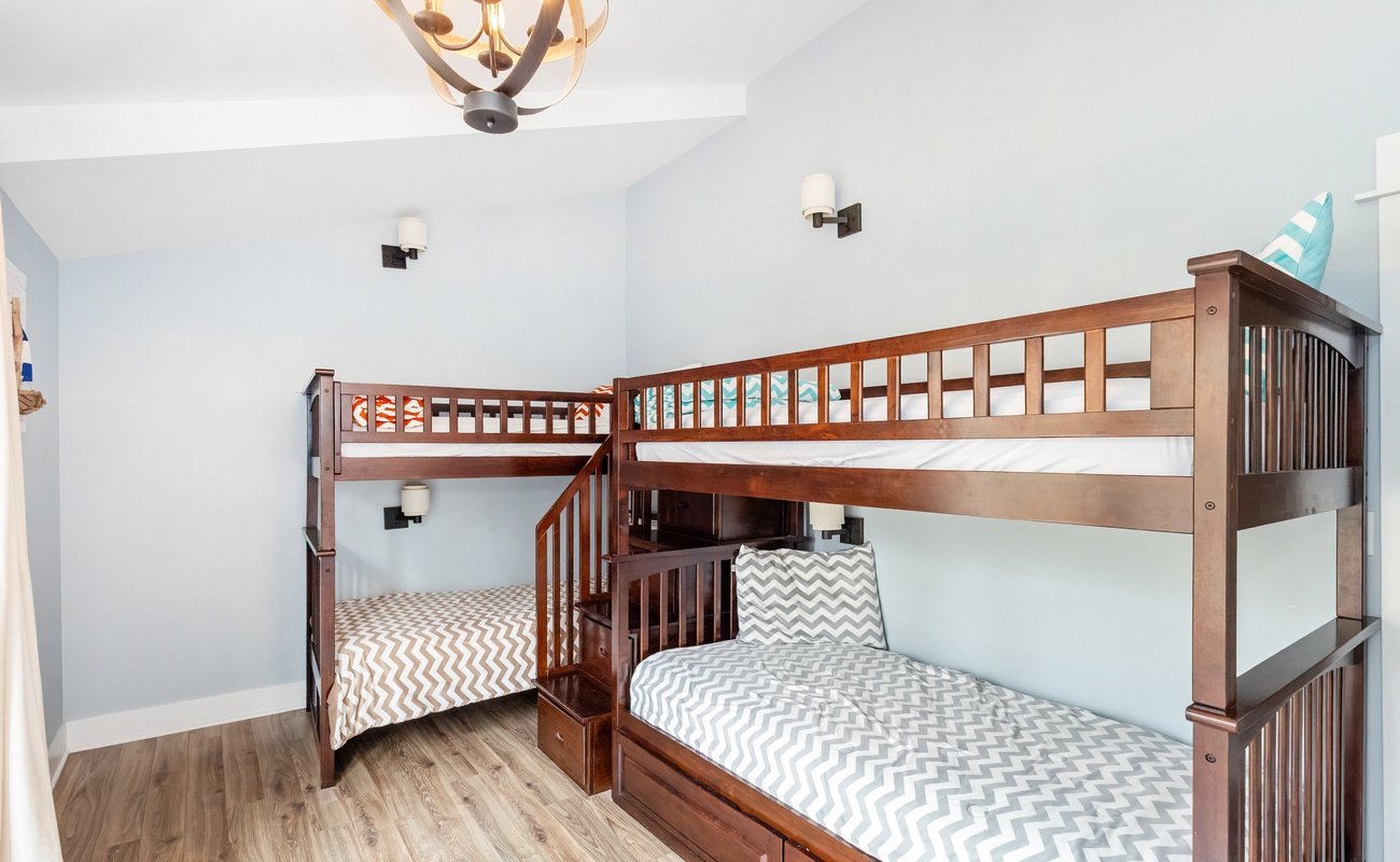 The sleeping arrangements are ideal for groups of all sizes, featuring a luxurious king primary suite, two serene queen bedrooms, and a fun-filled bunk room with four twin beds — perfect for kids or the young at heart.