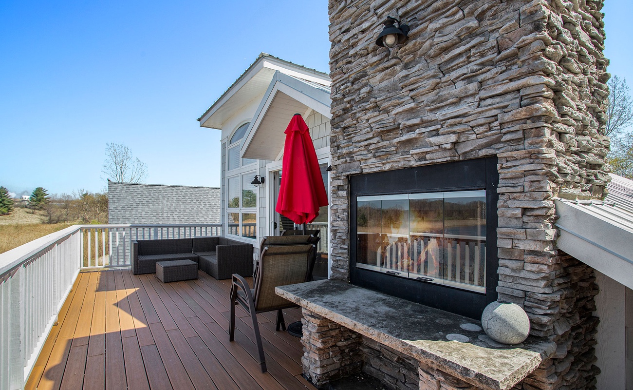 Two-way fireplace shared with the screened porch