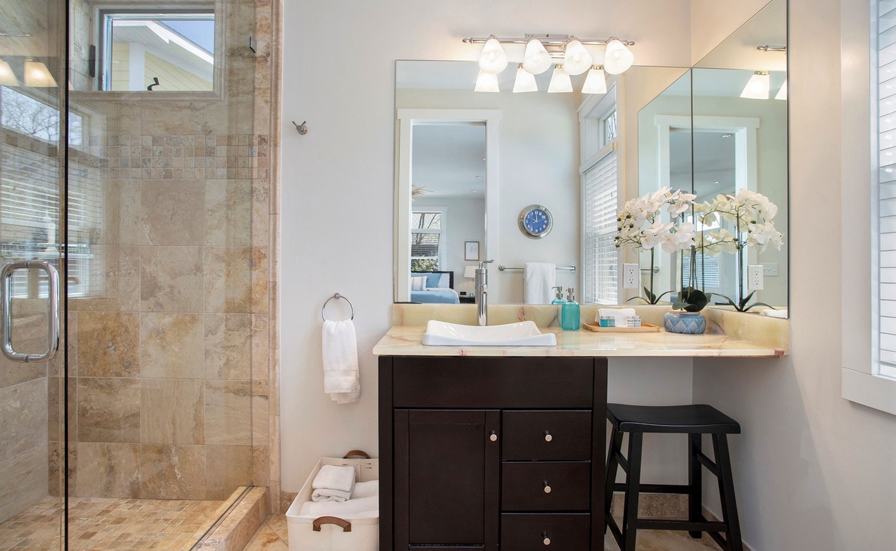 Ensuite bath with walk-in glass shower