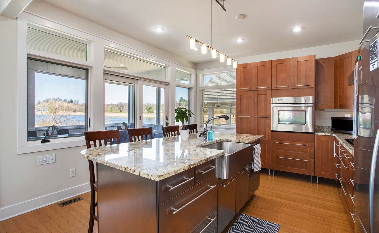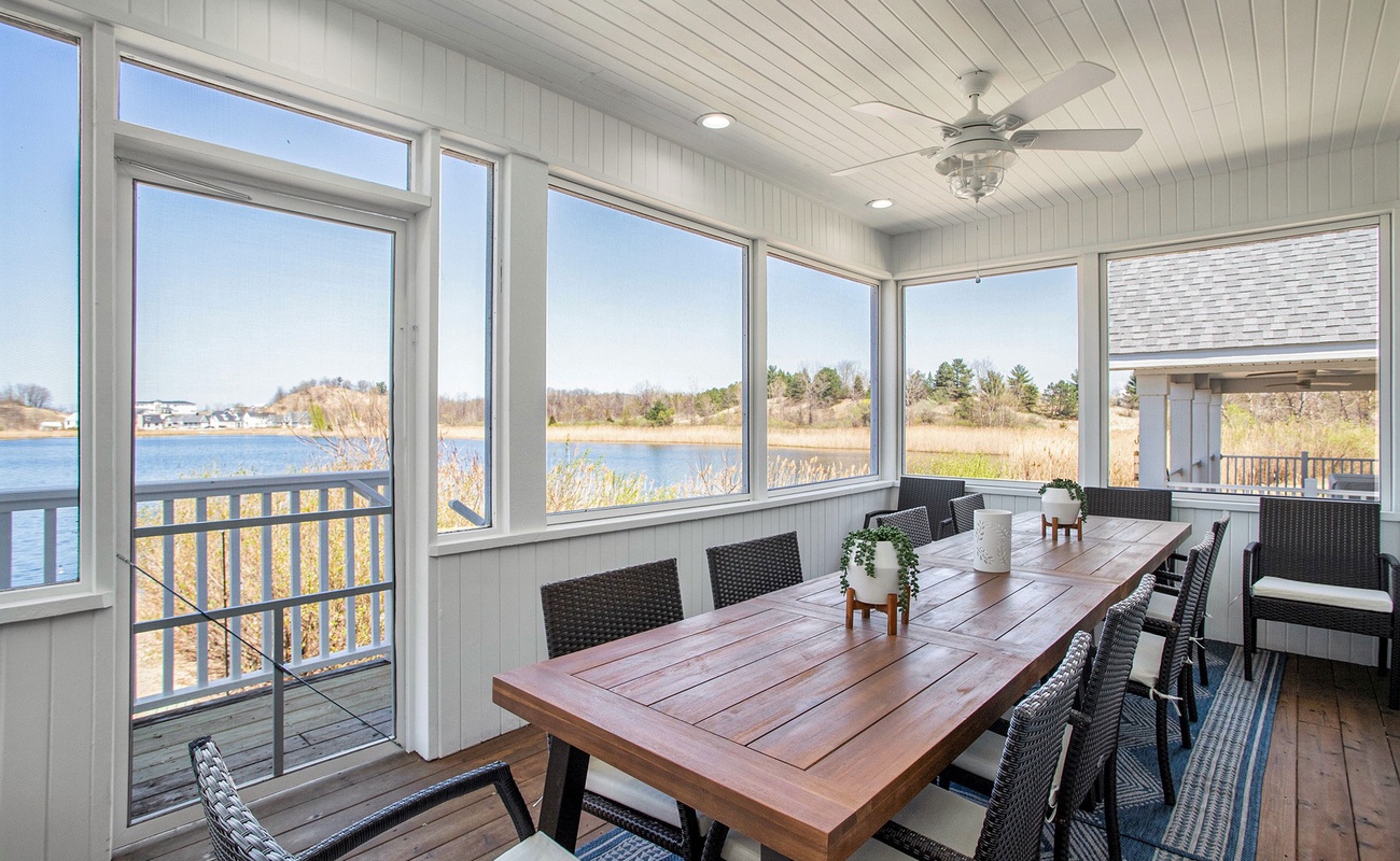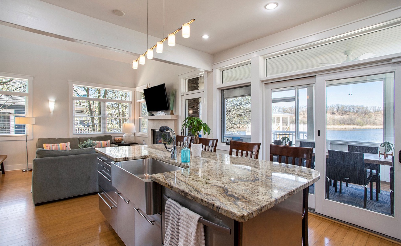 A bright, welcoming space with beautiful lake views.