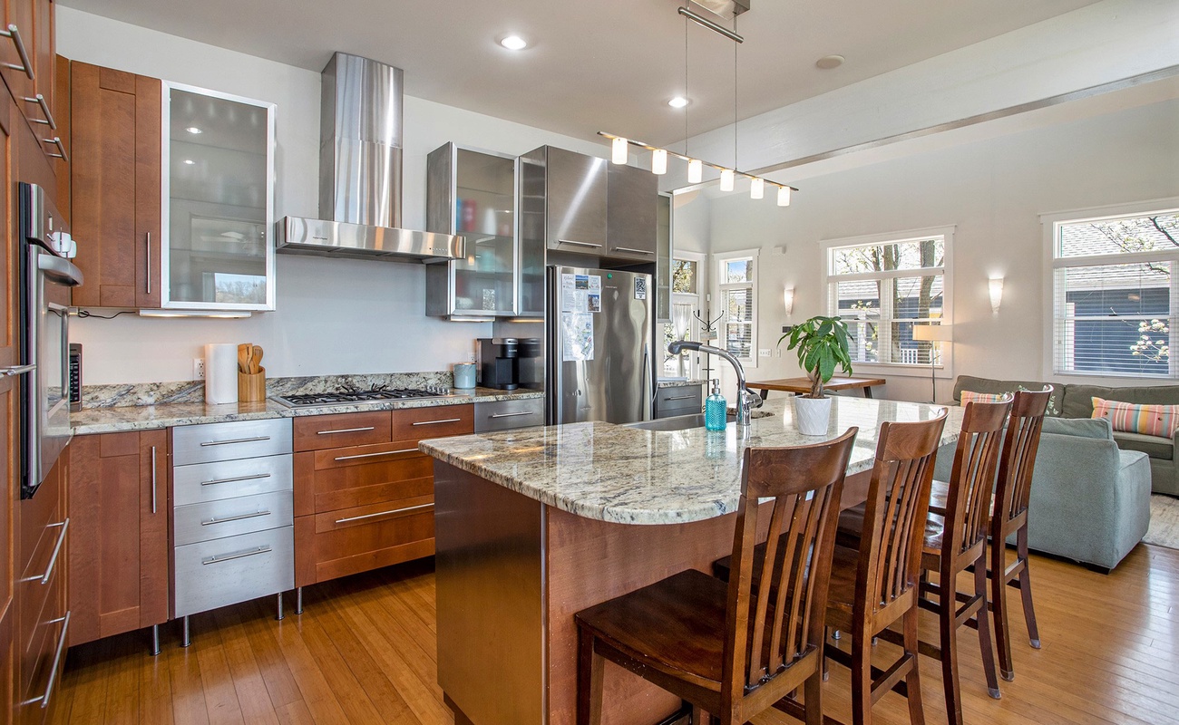Generous counter space with seating