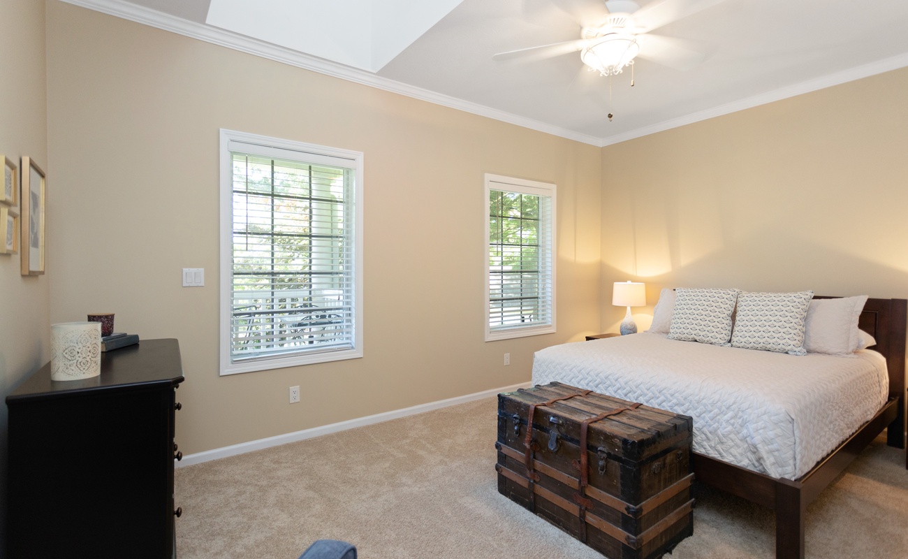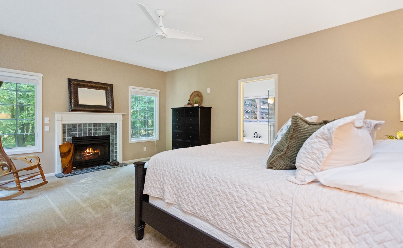 The primary suite is a sanctuary within the home, offering a spacious bedroom with elegant furnishings, a plush bed, and a spa-like ensuite bathroom. Unwind in the deep soaking tub or enjoy a refreshing rinse in the custom tile shower. There are three main floor bedrooms and one second floor bedroom.