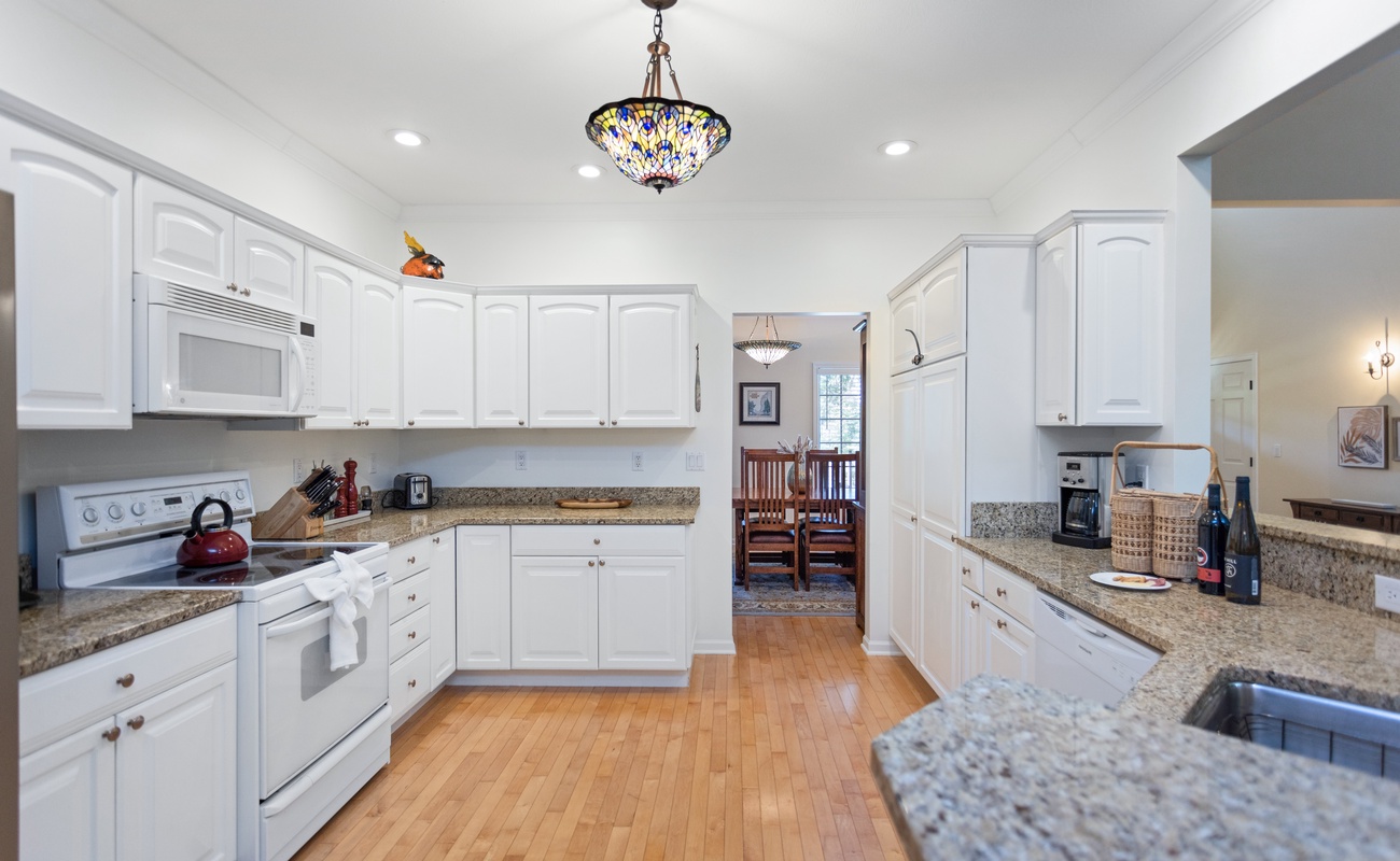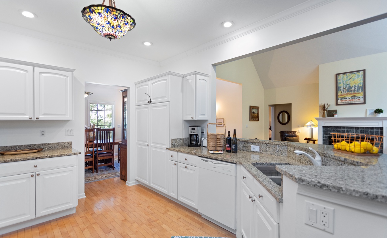 A large, open main floor with separate bedroom wings makes the home ideal for small family gatherings, offering communal space and privacy. Step inside the front door to living area that features cozy seating and is adjacent to the kitchen so you can all gather and talk while cooking.