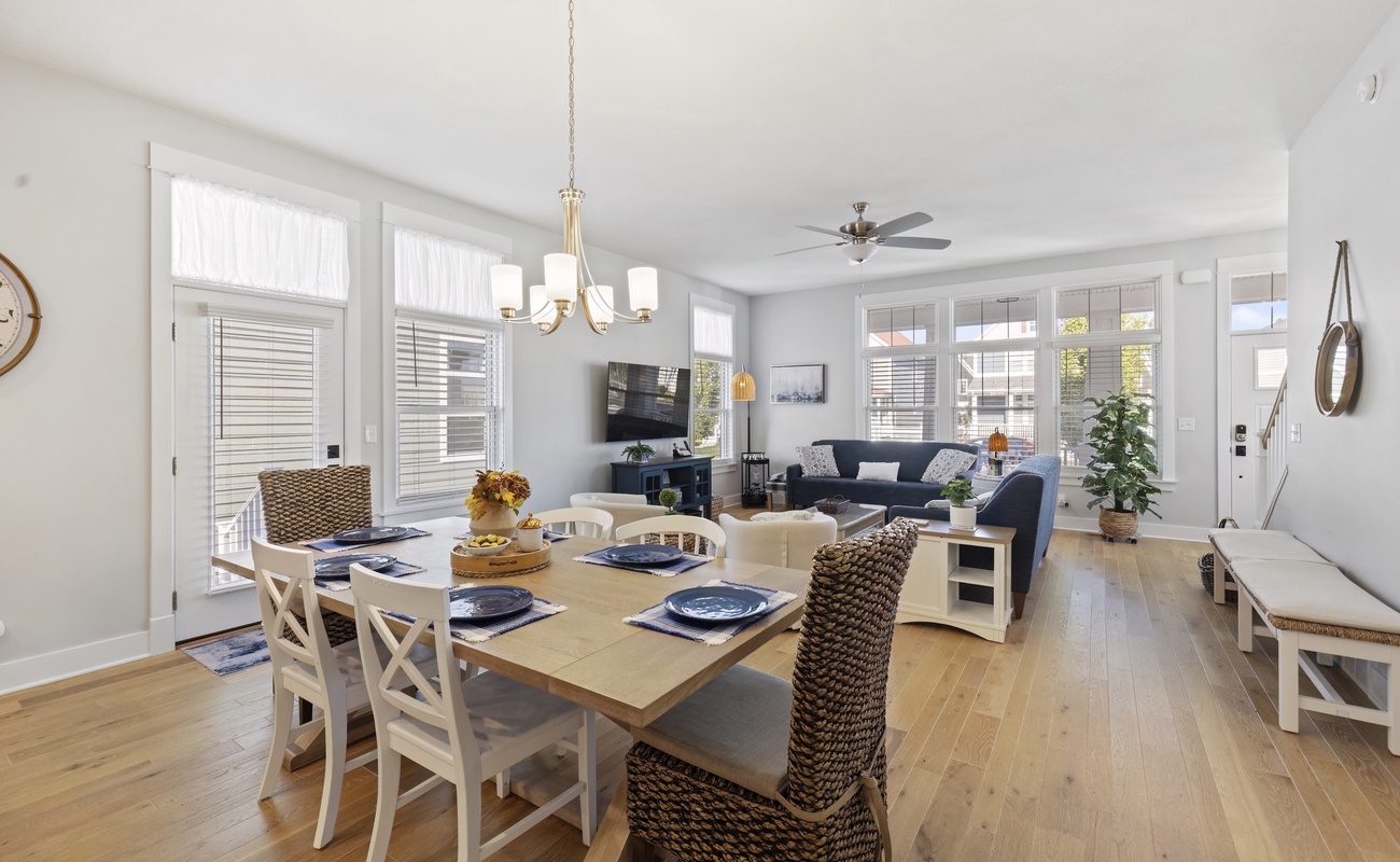Welcome to Vista Azul, a newer luxury retreat in the Harbor Shores community of St. Joseph. Designed with high ceilings, rustic hardwood floors, and stylish furnishings throughout, this home offers effortless comfort and charm. With three bedrooms, two and a half baths, and room for up to eight guests, it also features a front porch with partial marina views and access to the community pool open seasonally.