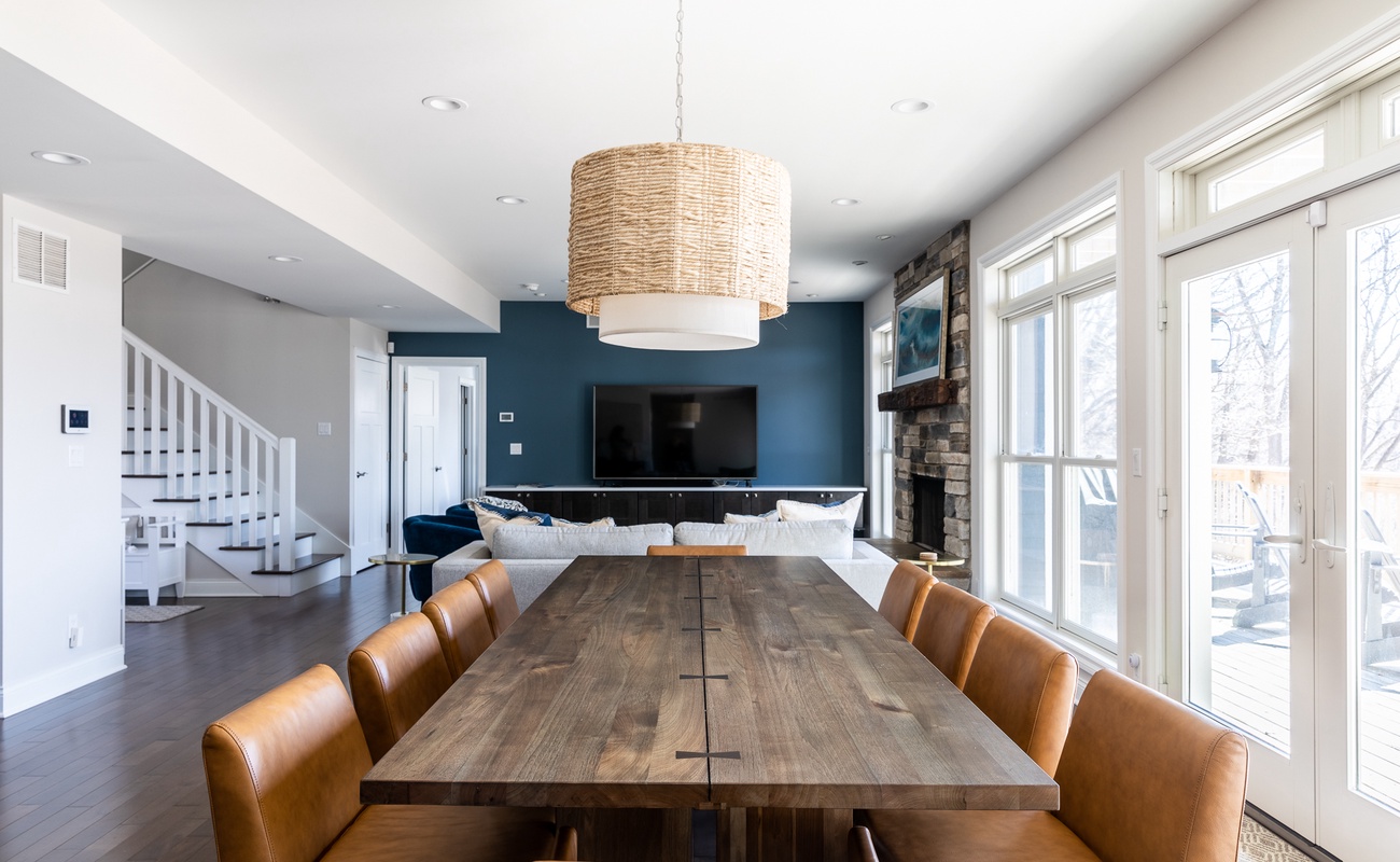 Walk into the home and take in the open concept main living area with a large TV, designer furniture and a beautiful dining room table with top grain leather chairs and seating for 10. The huge kitchen has brand new everything with white quartz countertops and high end appliances.