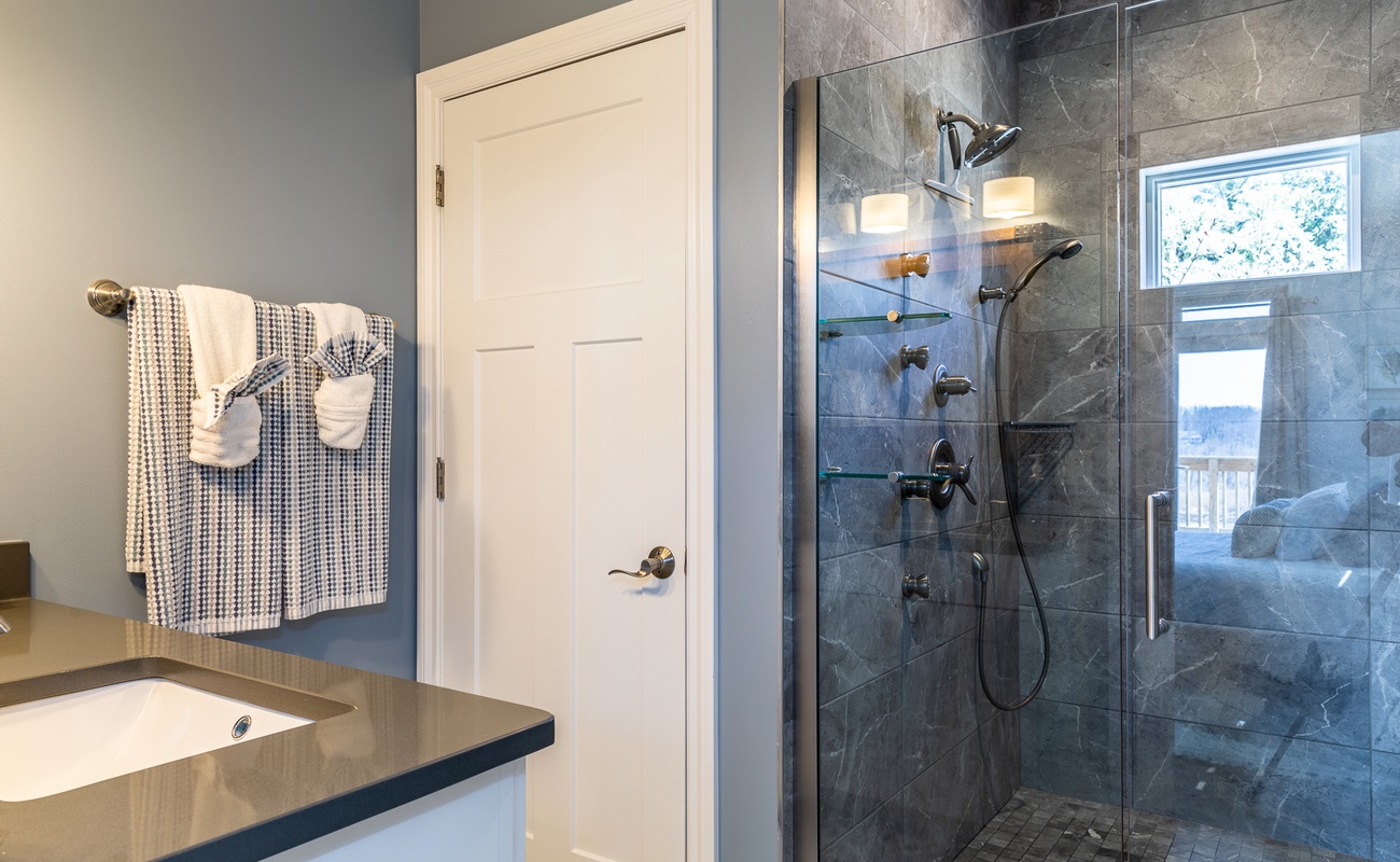 Full body Spa showers in both main BR bathrooms and heated bathroom floors